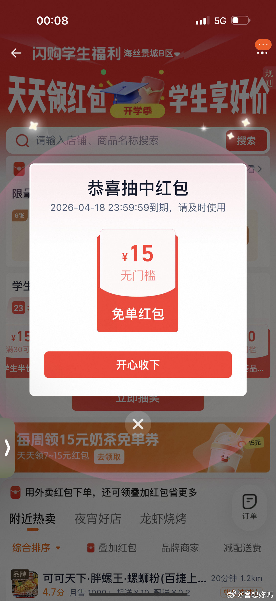 今天也有反馈15无门槛 过下 ⭐淘宝闪购搜【6662】 中间「学生福.利」 横幅进 👉 - ❶每周能...