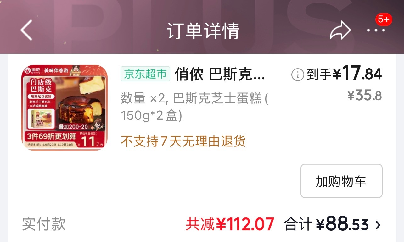 刚刚买了 巴斯克芝士蛋糕有优惠了