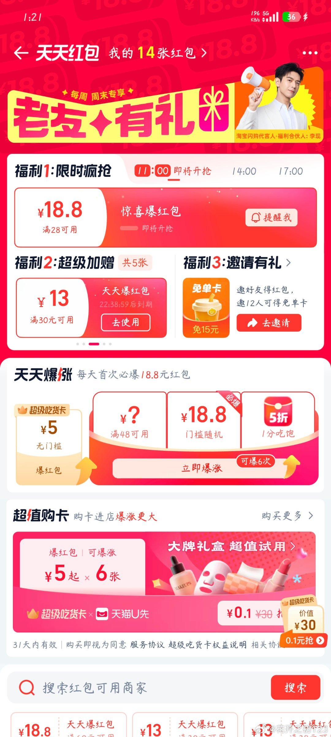楼上康师傅8券先领了哈 白天也有底部跟神价加码等 到时应该能多叠 领防 ...