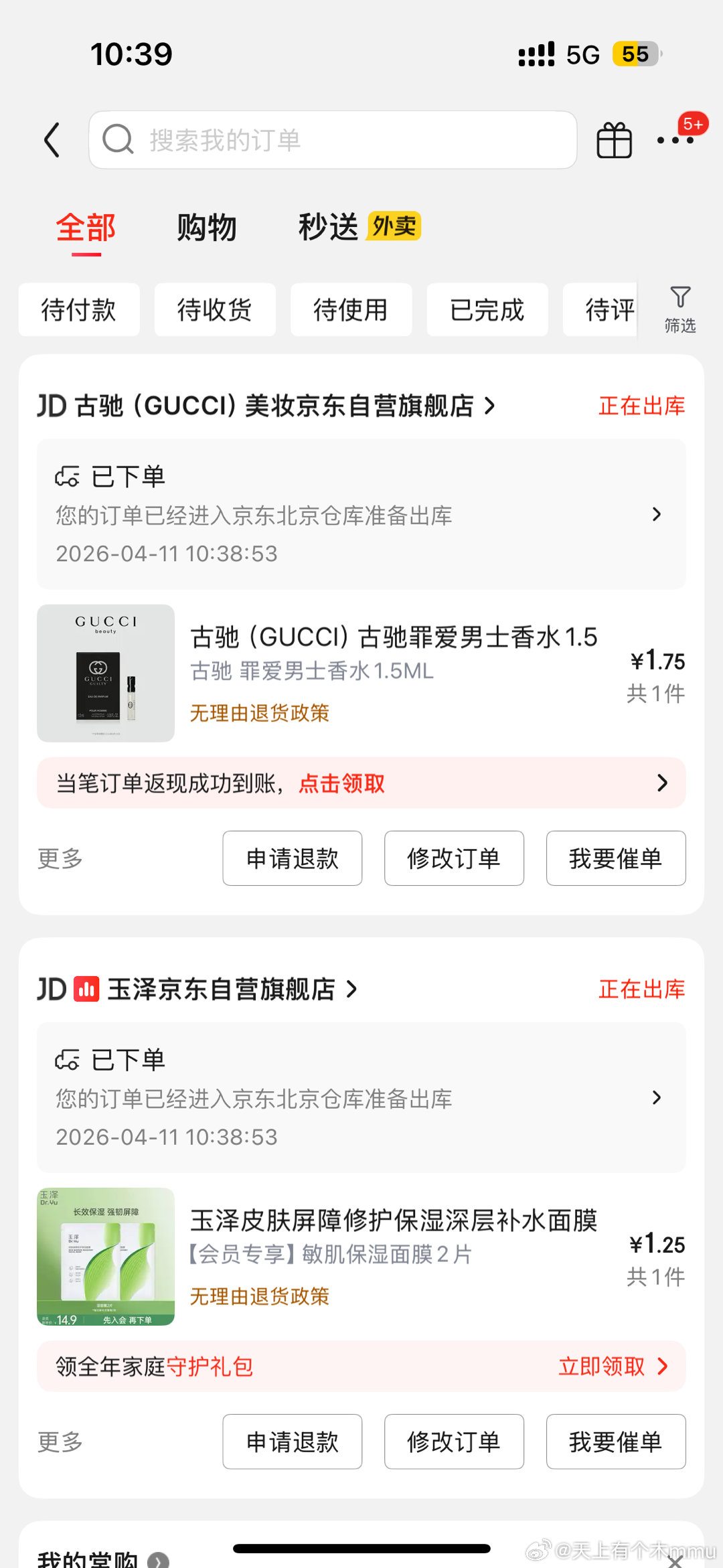 🐶东 反馈 古驰(GUCCI)罪爱男士香水1.5ML(非卖品)效期2026/6/28,砸5券1.9...