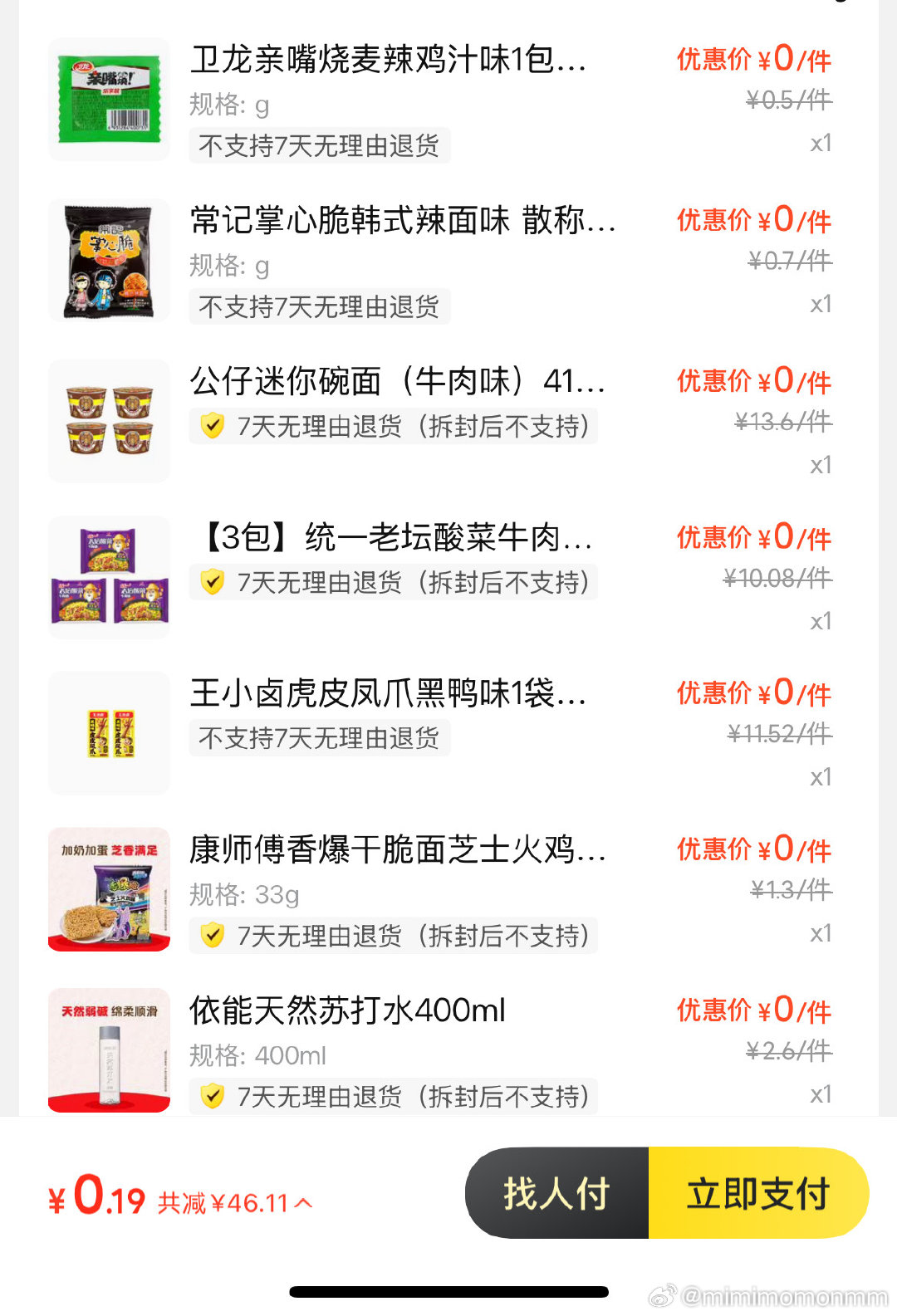 楼上1.5先忽略没补哈 凌晨有领取的记得用哈 可以叠加虹包和千问立减 ...