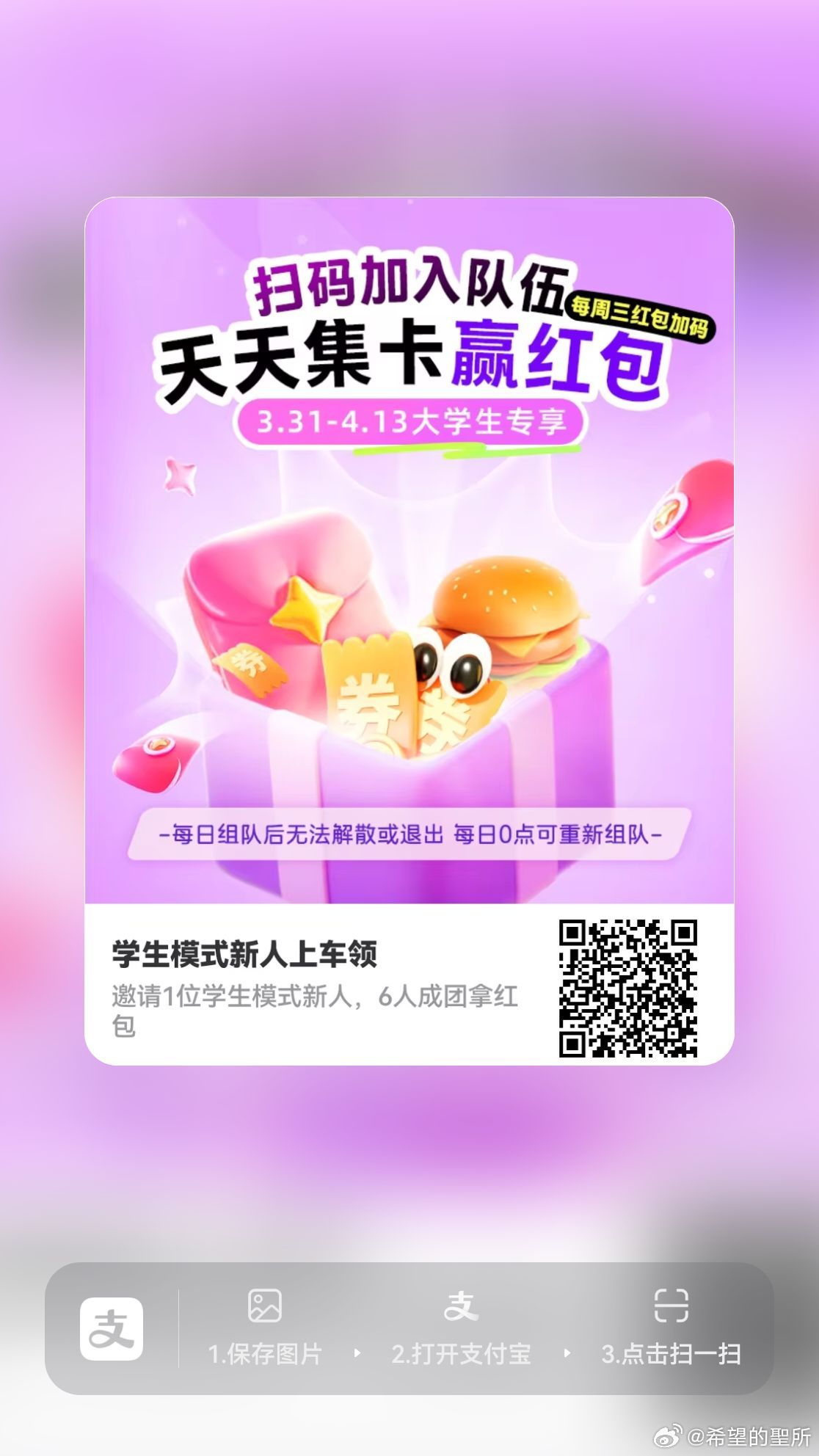 支fu宝搜:学生模式 每天⏰21点前组队 22点开 4人得稀有卡 6人有吱fu虹包 能开0.12-8...