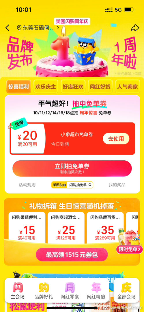 闪购抽免单我的是4-1,啤酒