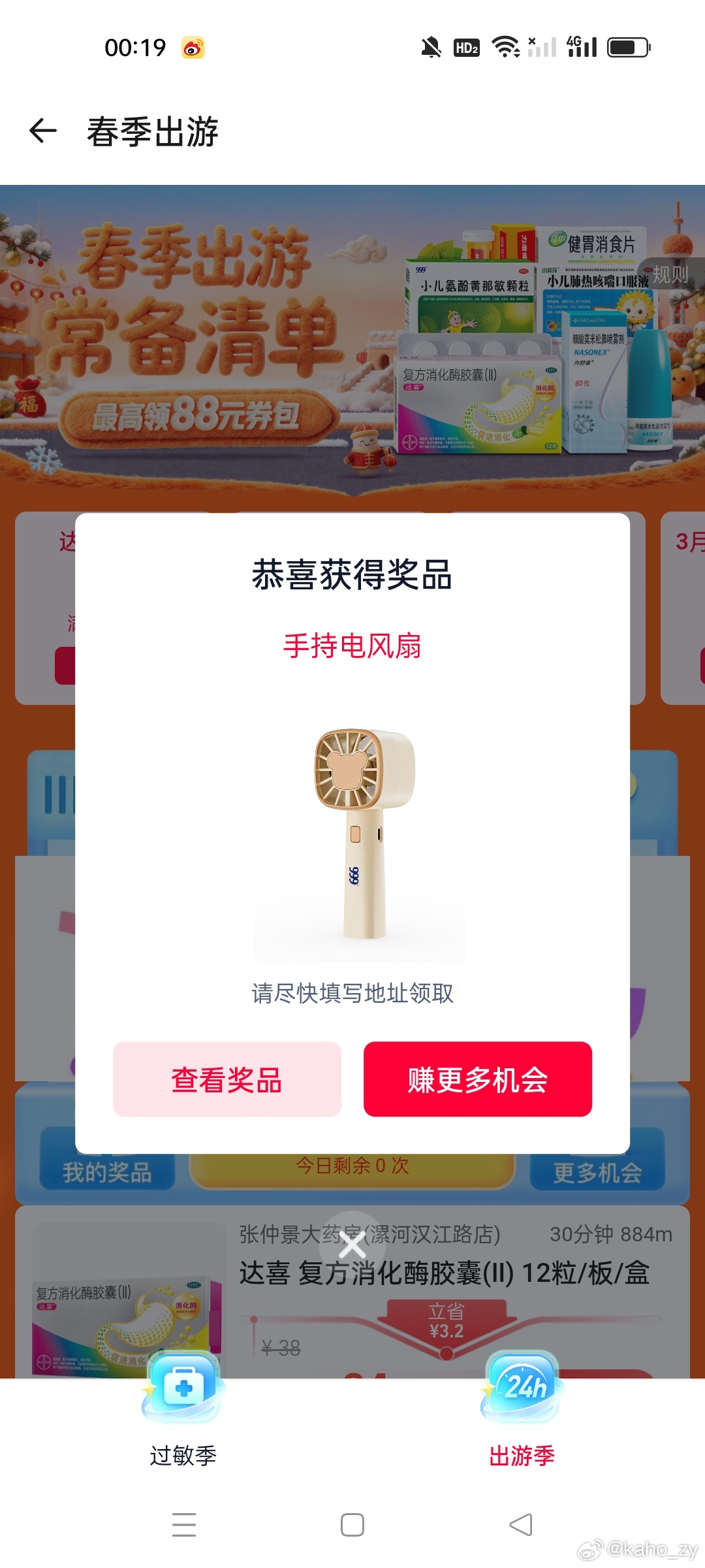 淘宝闪购-买药 如图横幅 切 出游季 部分能抽实wu 反馈手持风扇 去试试...