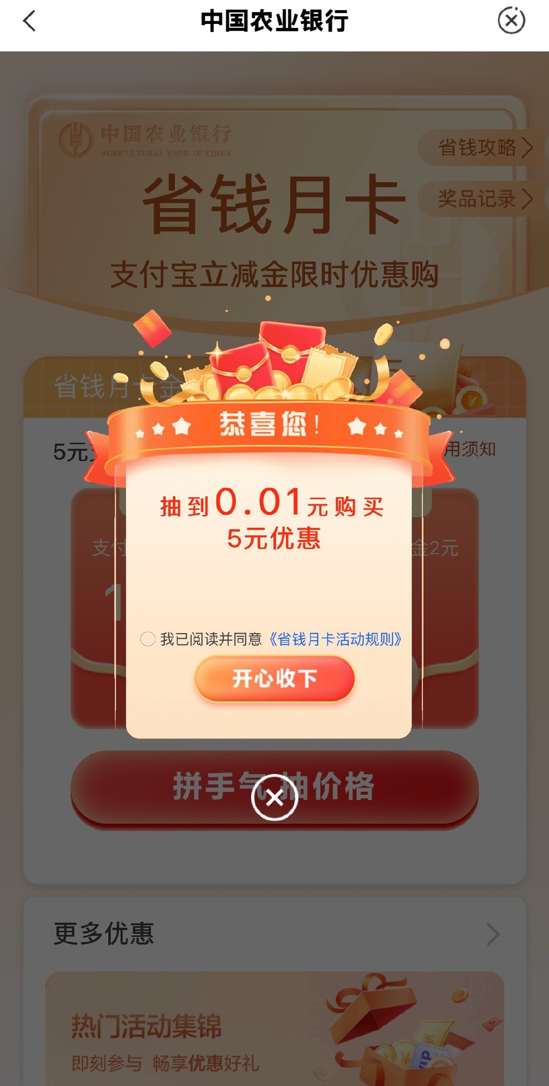 农行zfb省钱月卡 1💰买5 ...