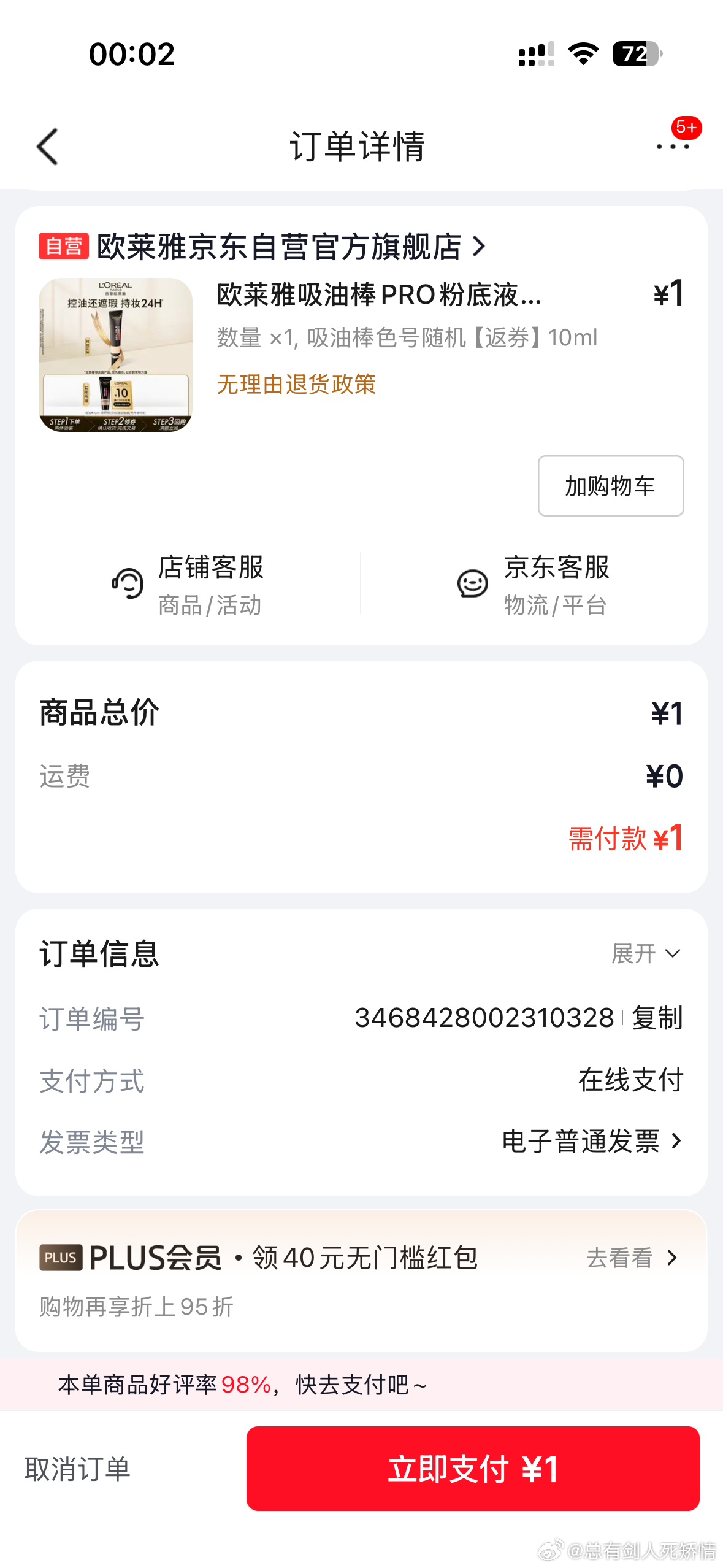 【0点】 试用,留意欧莱雅是否开...