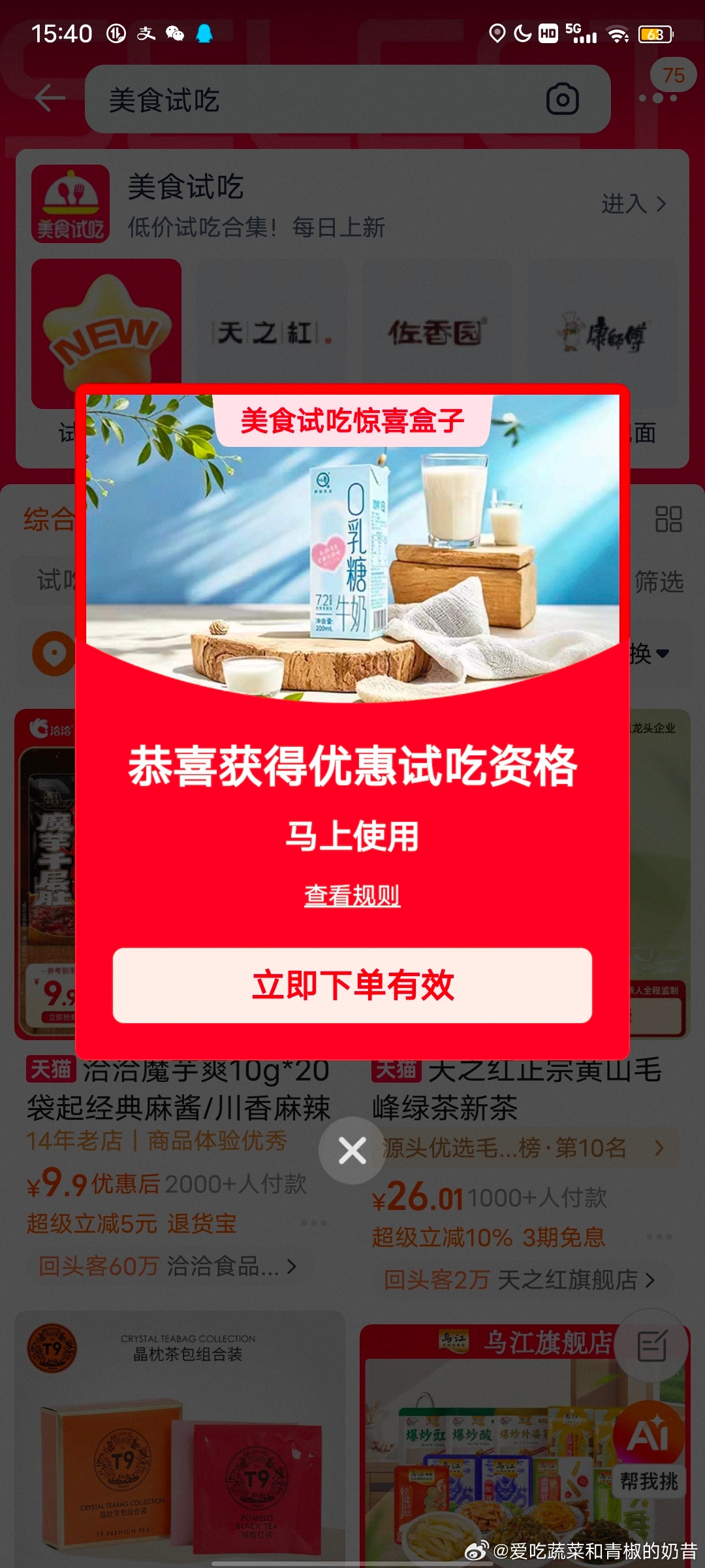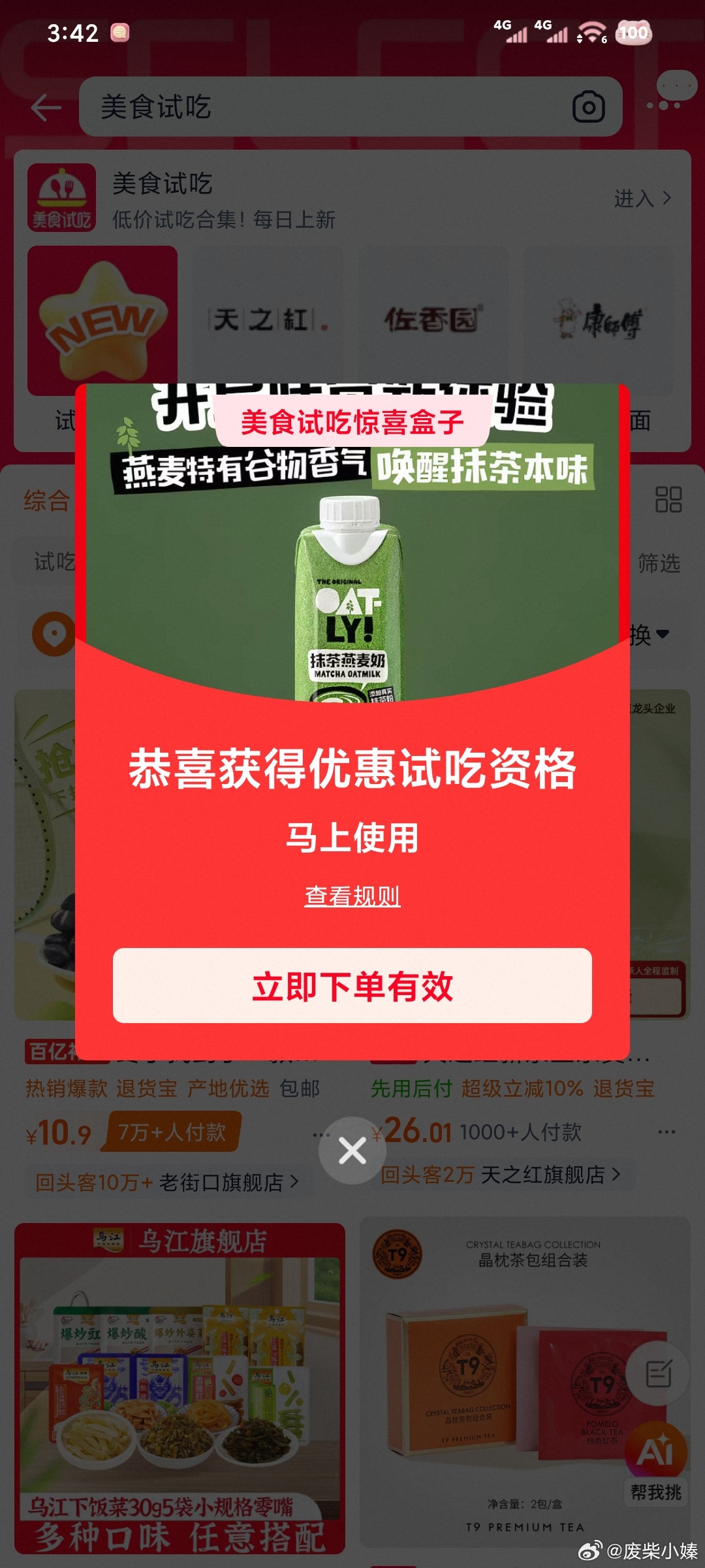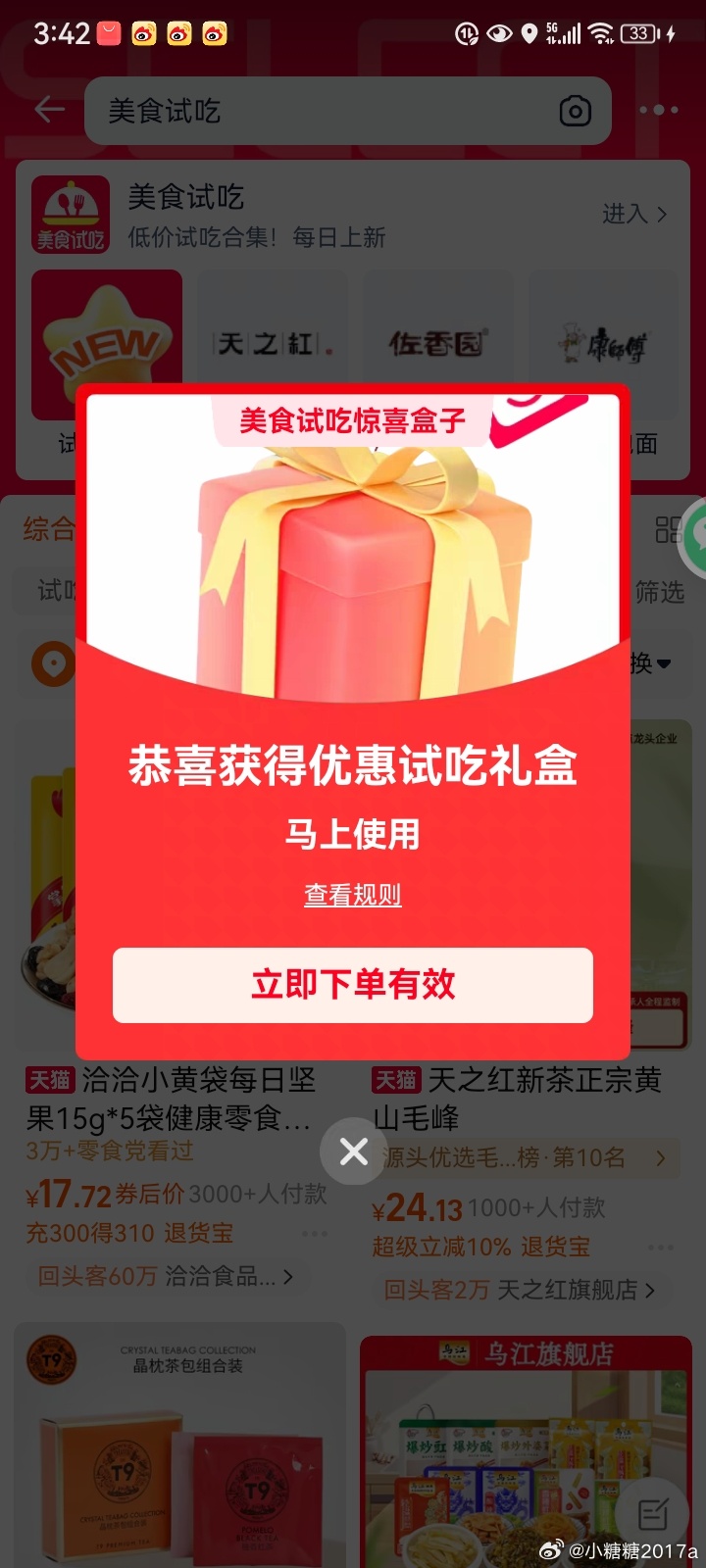 淘宝搜 美食试吃 也去抽一下 有反馈 ...