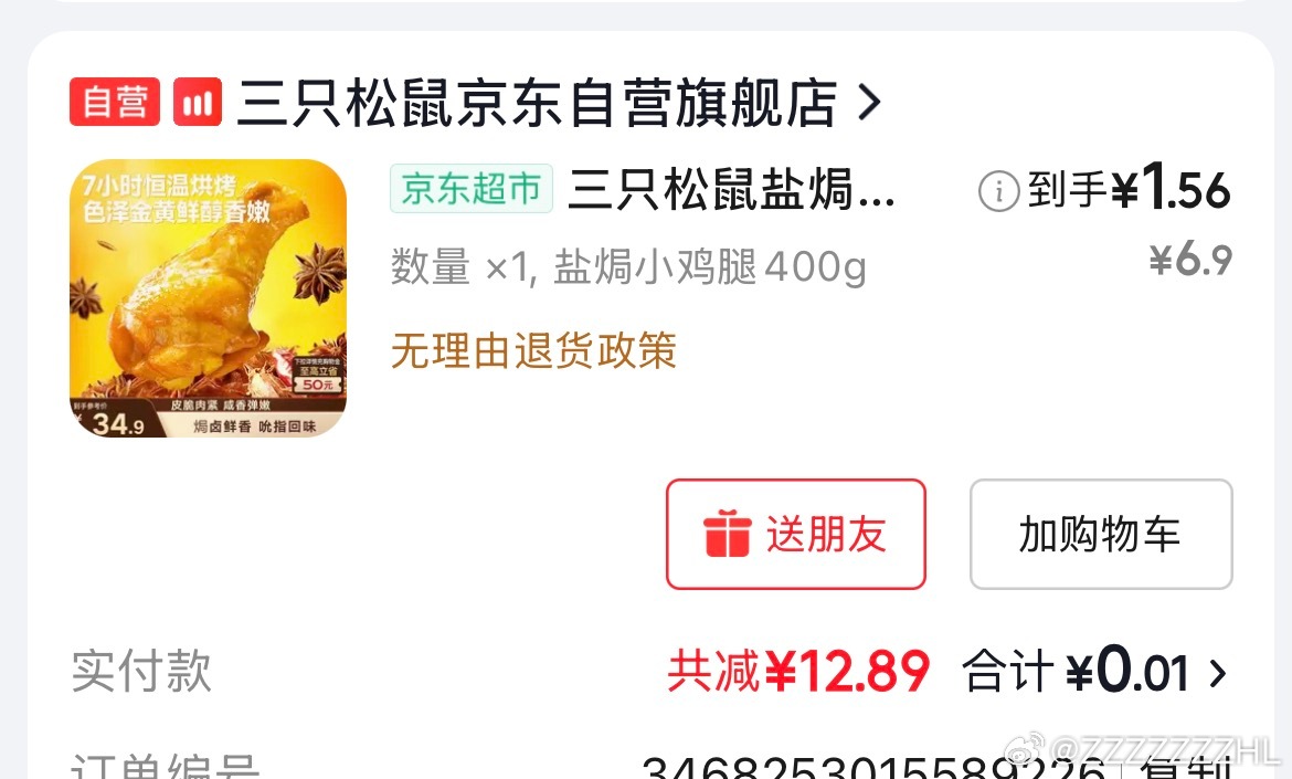 🐶东 这波都不是地区价,自行店里看 三只松鼠盐焗小鸡腿400g 砸5券【1.56】...