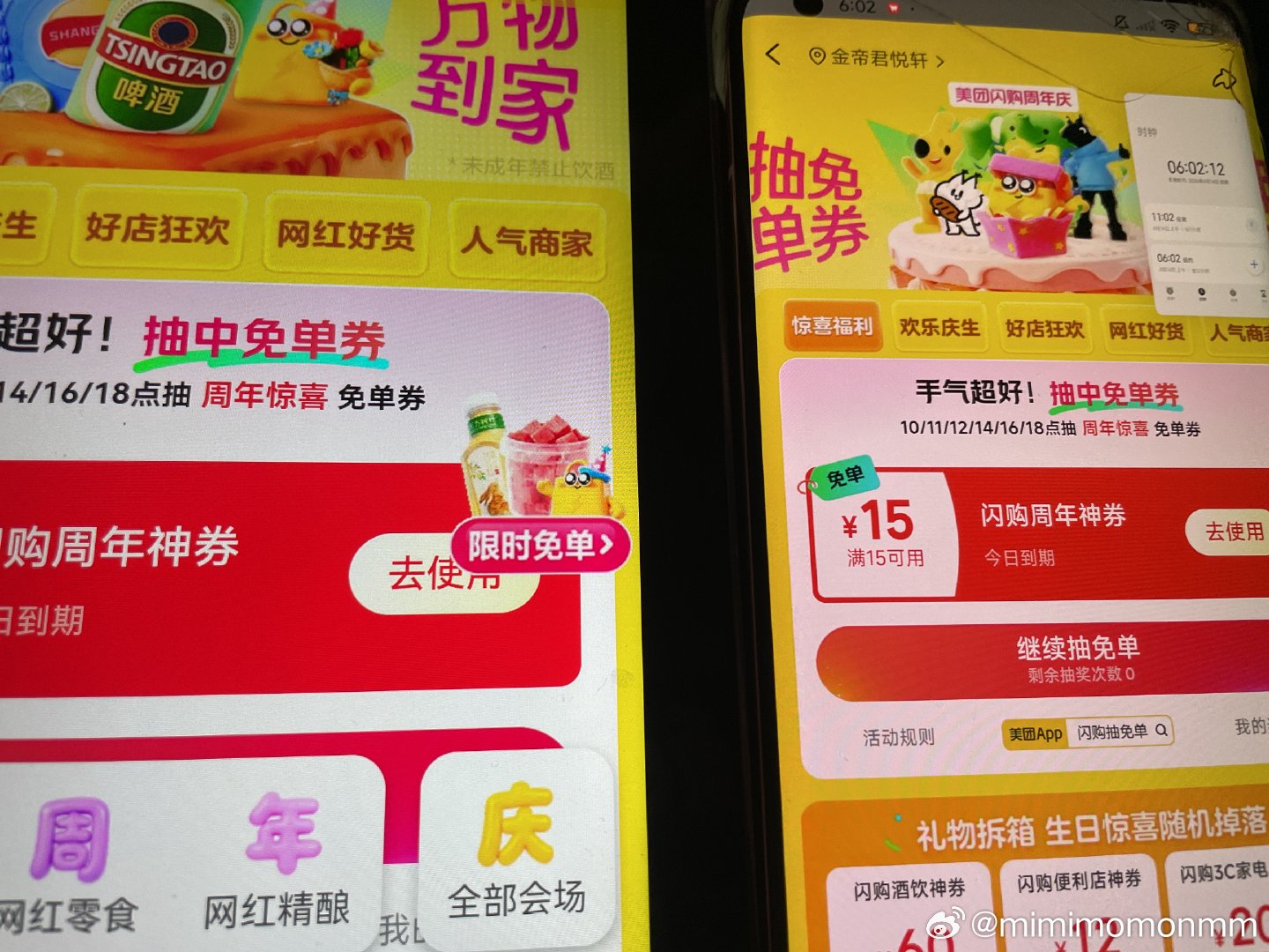 有反馈啦 现在去抽试试 8点-22点前 每2小时可抽 领奍中心概率抽29-20 京东外卖奶茶能做到2...