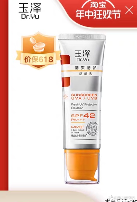 🐶东 玉泽(Dr.Yu)清爽特护防晒乳 温和免卸50ml 弹9.1折立减,拍2件【64.88】 赠:...