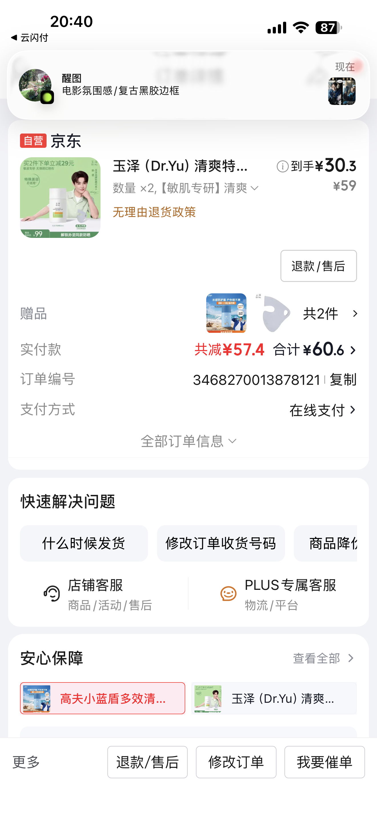 赠:高夫小蓝盾多效清爽防晒霜50ml