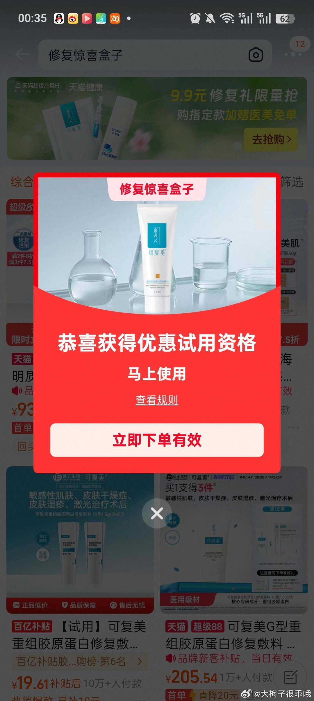 淘宝搜 大牌试用 淘宝搜 修复惊喜盒子 认1亓 ...