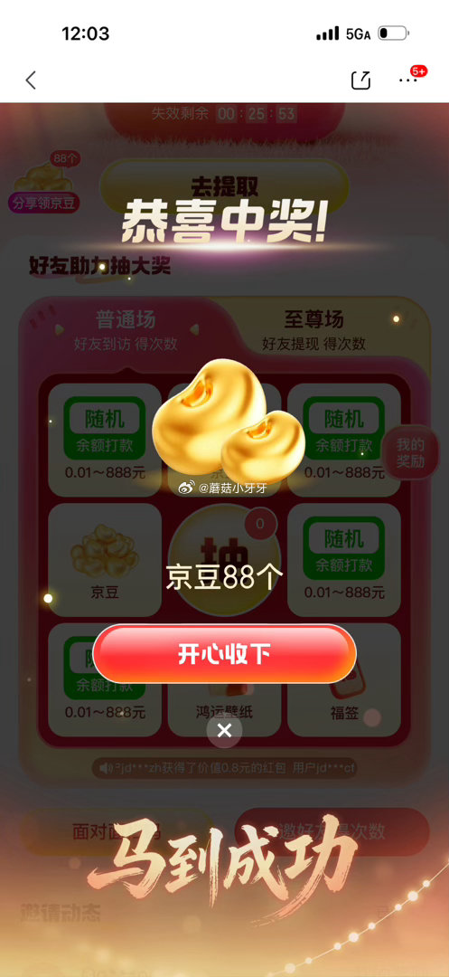 反馈一个号应该能中8次,现金到余额,还有京豆,普通场有水,助力不限次数(至尊场没水)