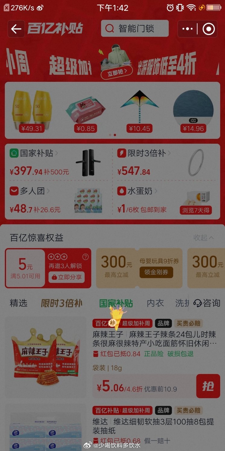 淘宝搜:百亿补贴 部分号有签到七天 领1亓包U瓜子/鸡蛋/奶等 没有的换号 去看看哈 ...