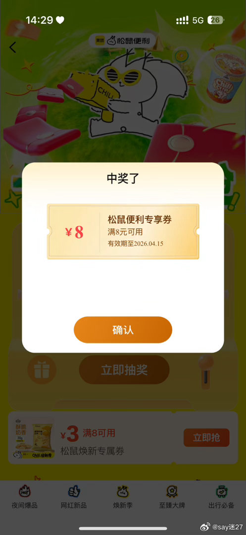 美团会场新上一个抽10万兔单 美团搜【松鼠便利520】 如图抽 若有25-10可叠16哈 👉mp:/...