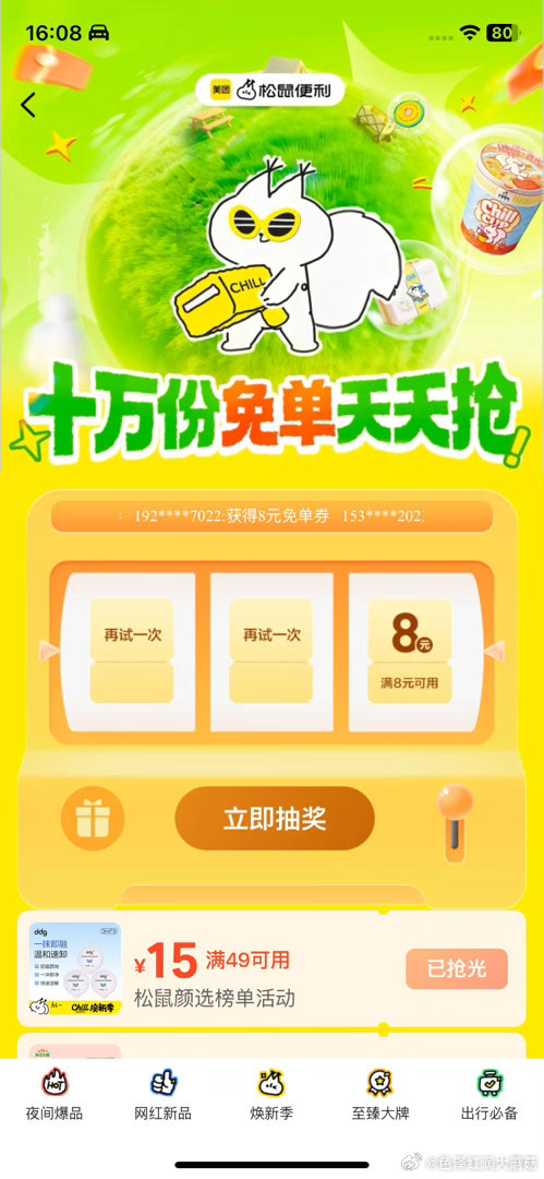 今天奶茶卡 反馈也很好哈 技巧在于 整点前先扫别人抽完的码 等到整点 直接在页面抽即可 ...