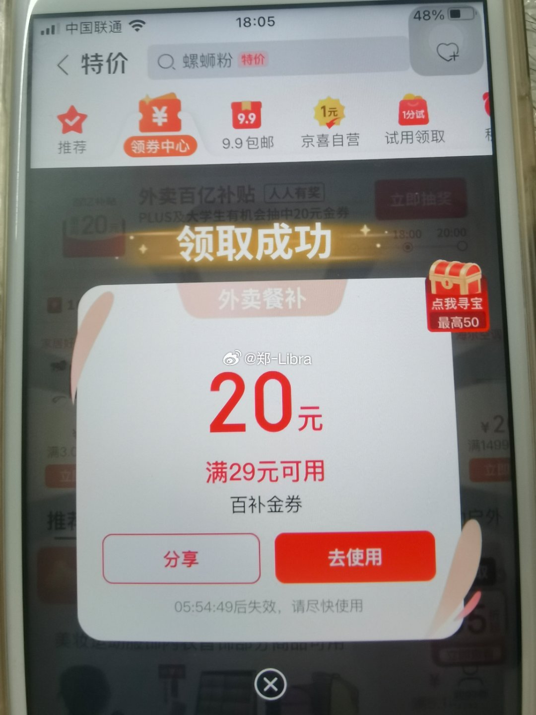 丐友京东搜:外卖补助105