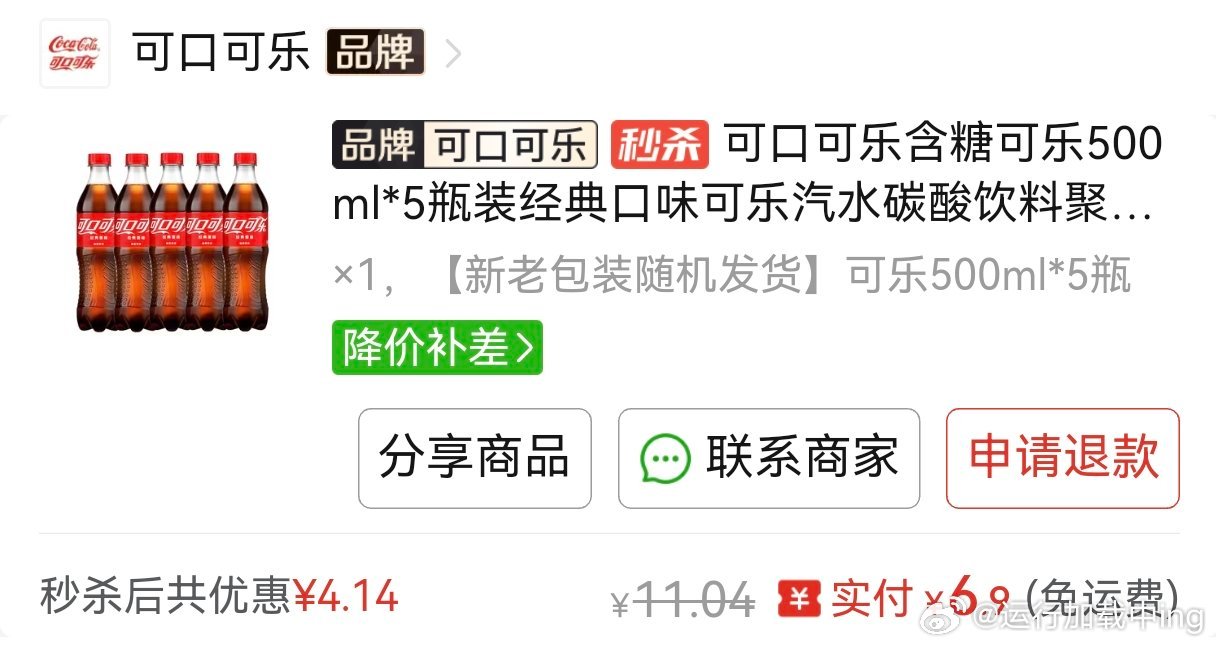 价格不是很美丽,多多可乐这两天挺便宜