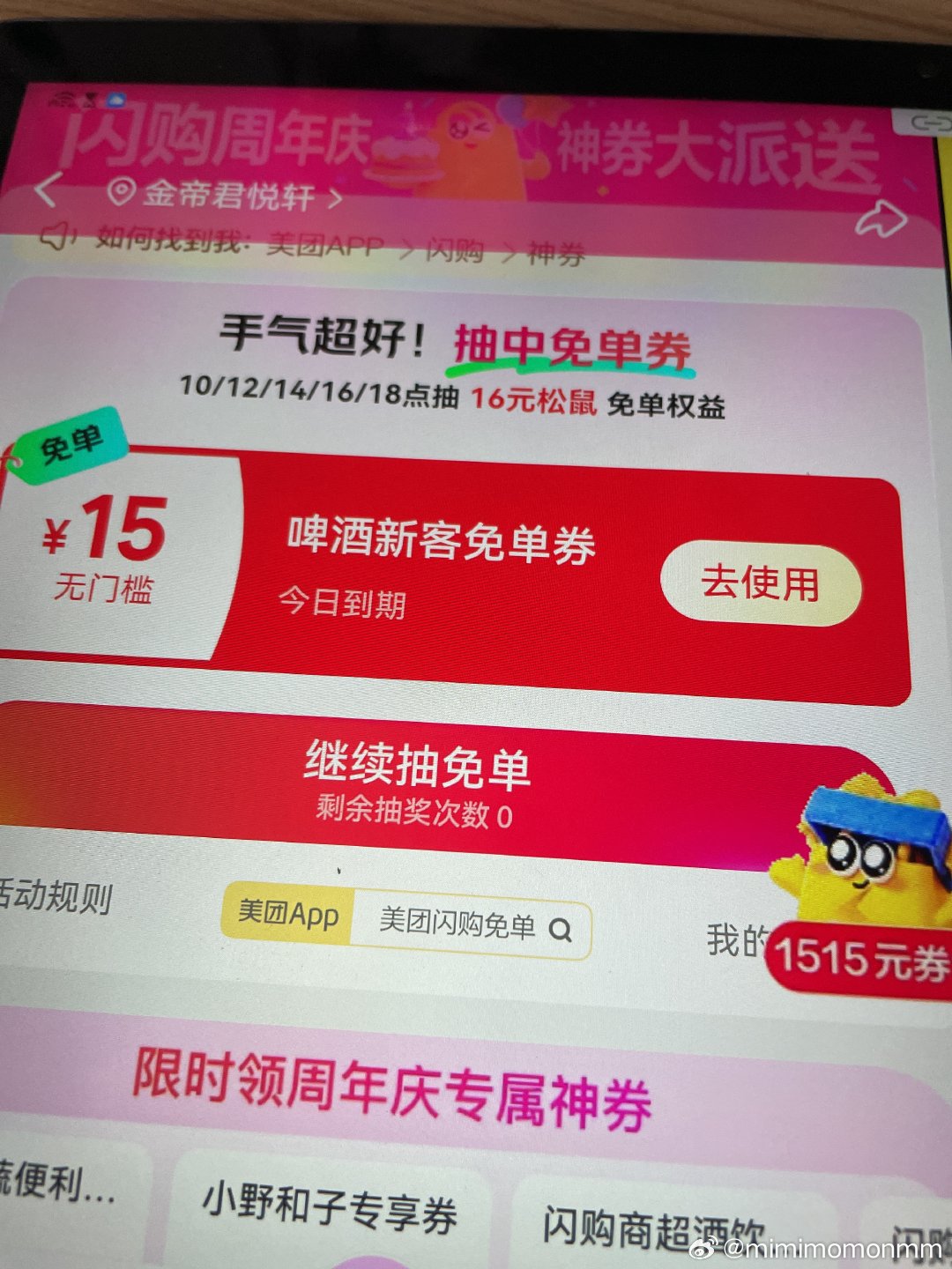 0点 美团搜【松鼠便利520】 去试下抽8-8兔箪蜷 页面也有25-10蜷领 可叠加 - 底部切至臻...