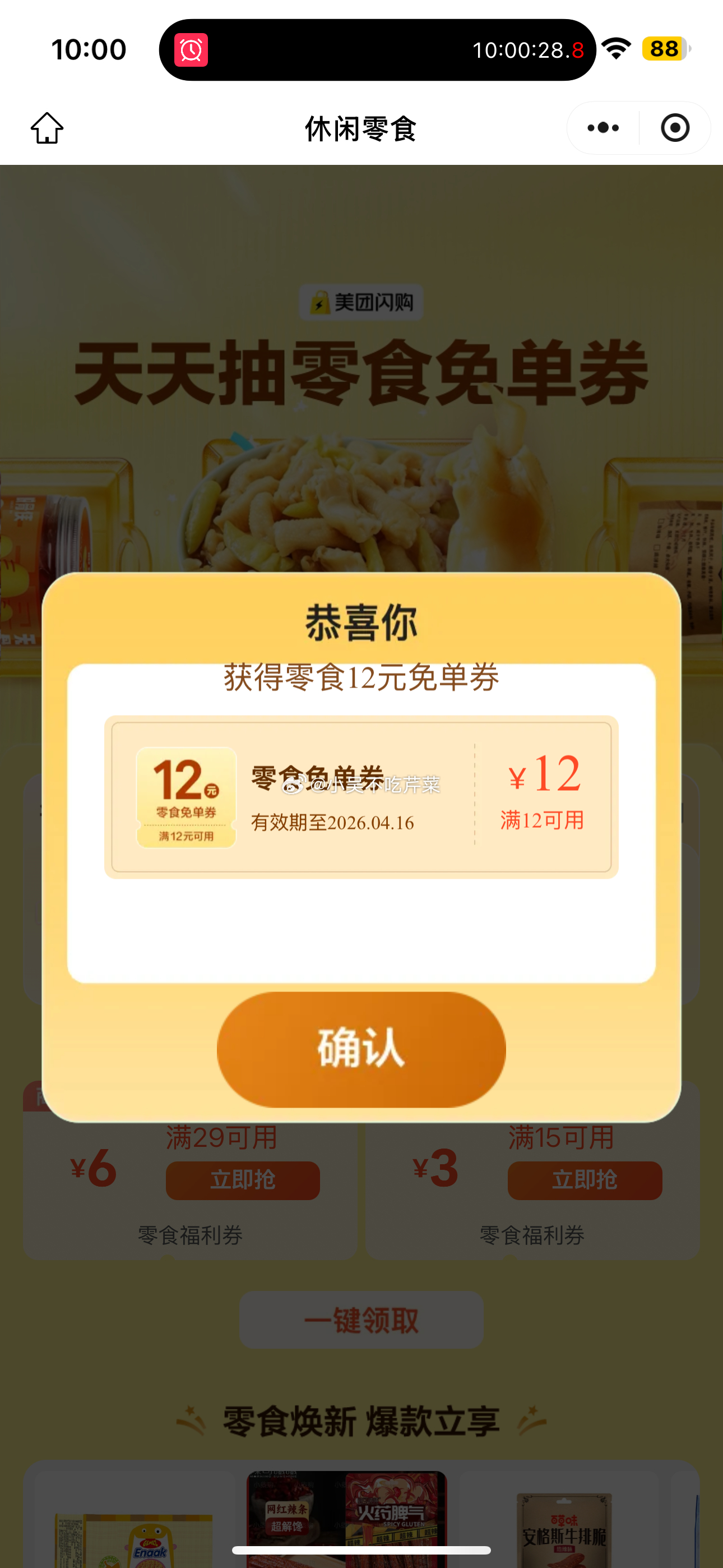 10点 抢17-16/29-20外卖券