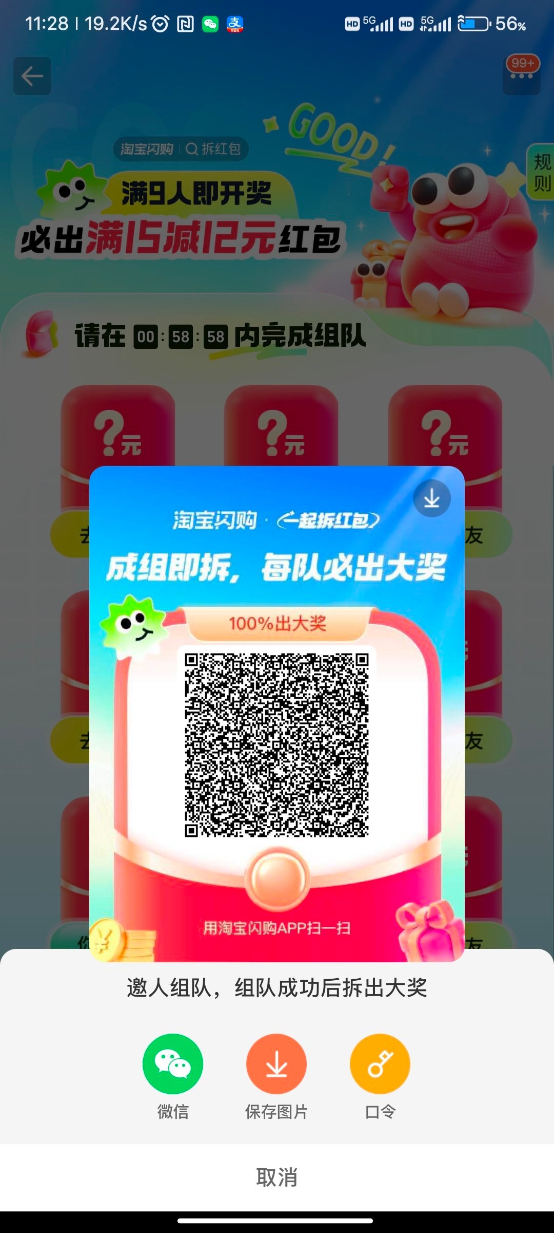 饿了么app搜【拆红包】 满组队9人 🉐15-12外卖鸿包 ...