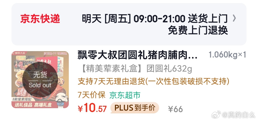 🐶东 飘零大叔团圆礼猪肉脯肉礼盒632g 如图【13.63】 凑...