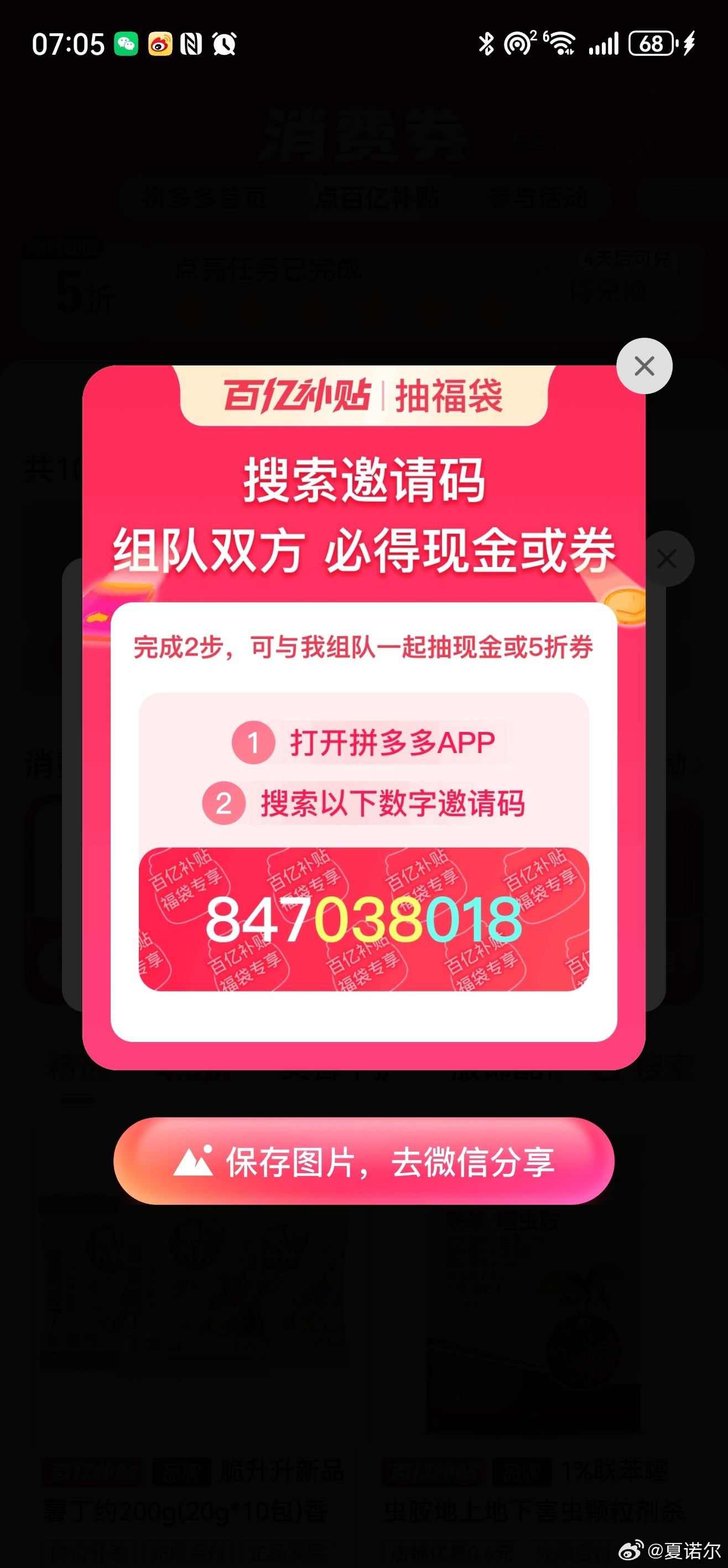 拼多多 新的一期组队今天继续 自行组队 记得点亮 首页-百亿补贴-百亿消费券-组队抽福袋 最高5折券...
