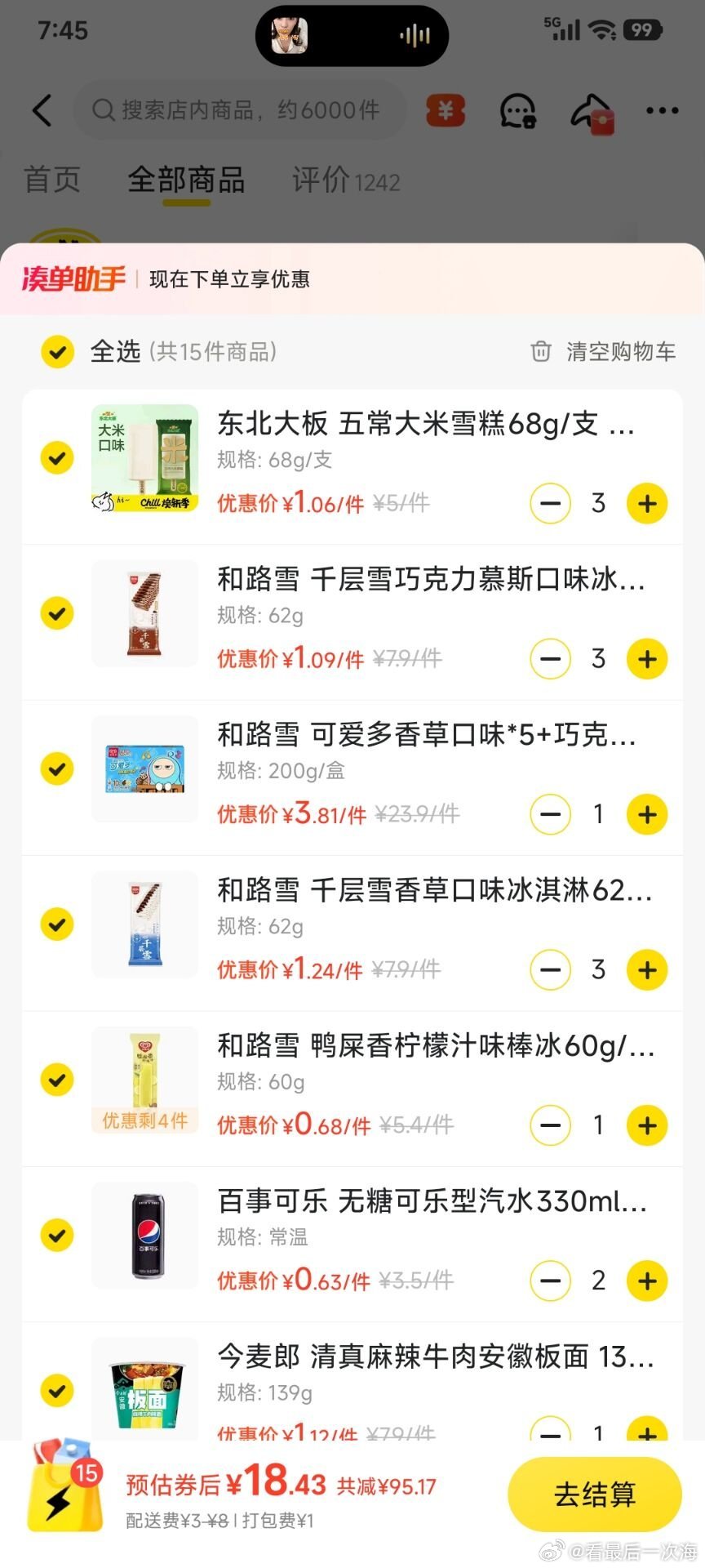 低至18,买100左右的零食雪糕日用品 1️⃣❤️美团搜15015 领券,可抽奖