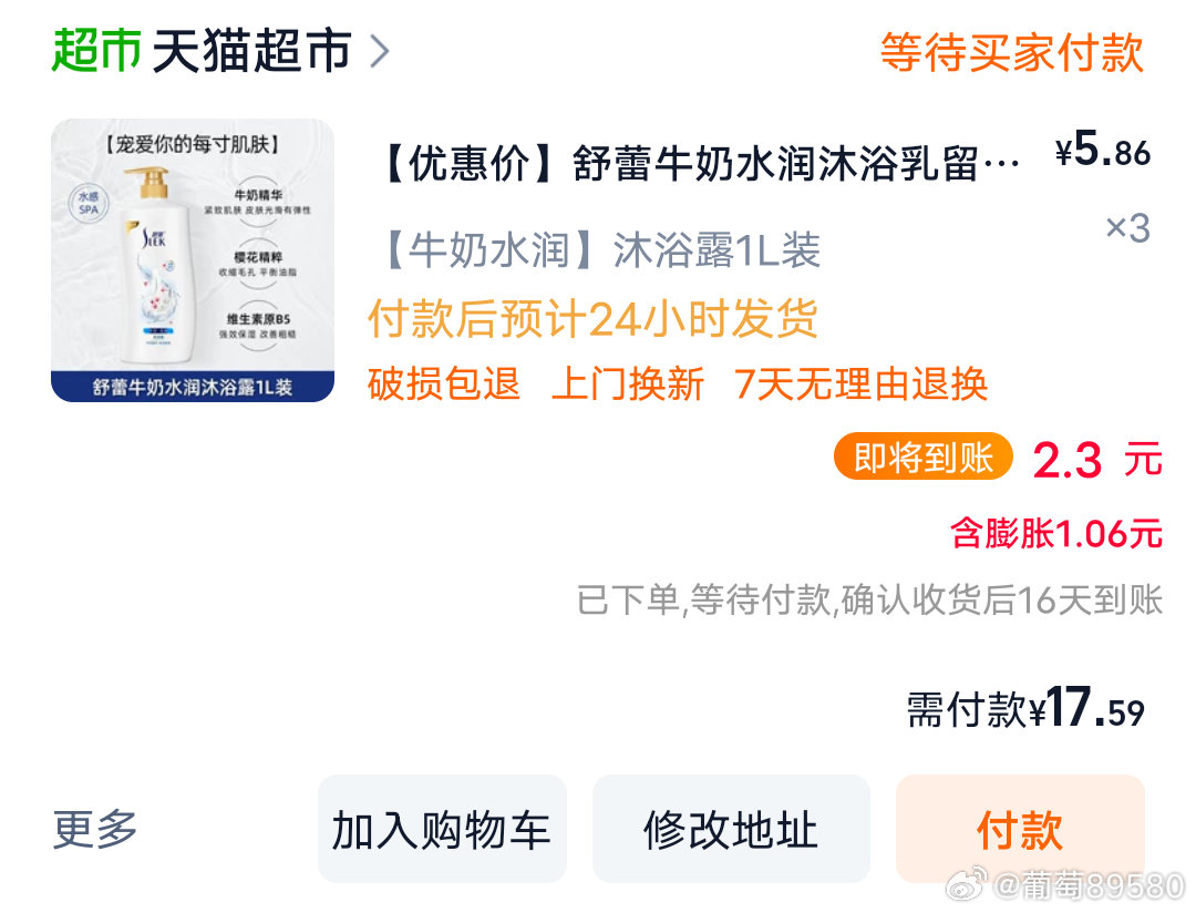 牙牙,舒蕾沐浴露三瓶1L的现在只要18