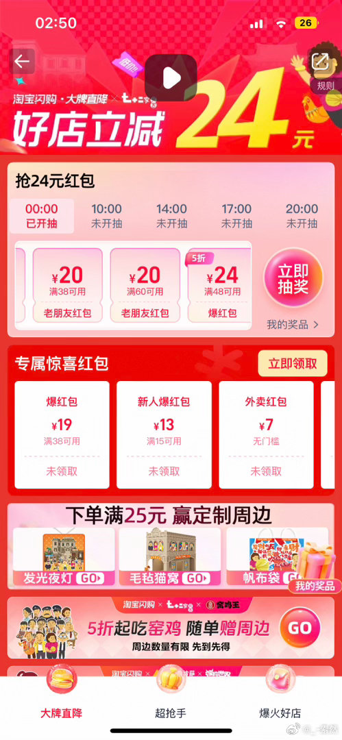 ❗️8-19点17-16外卖券 ,8-23点抢29-20券