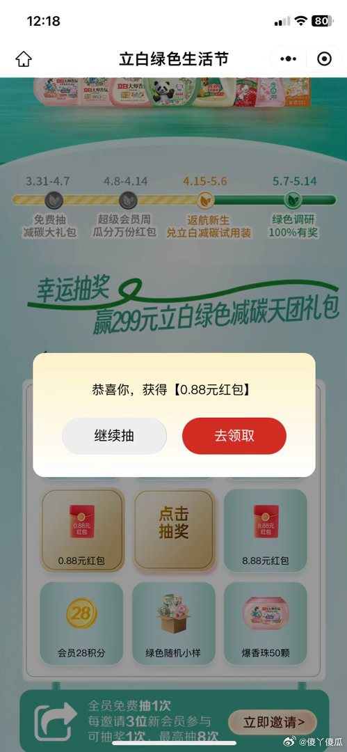 立白去抽 目前有反馈0.88 #小程序://立乐家/BW2RAaDr8vRZ8rc ...