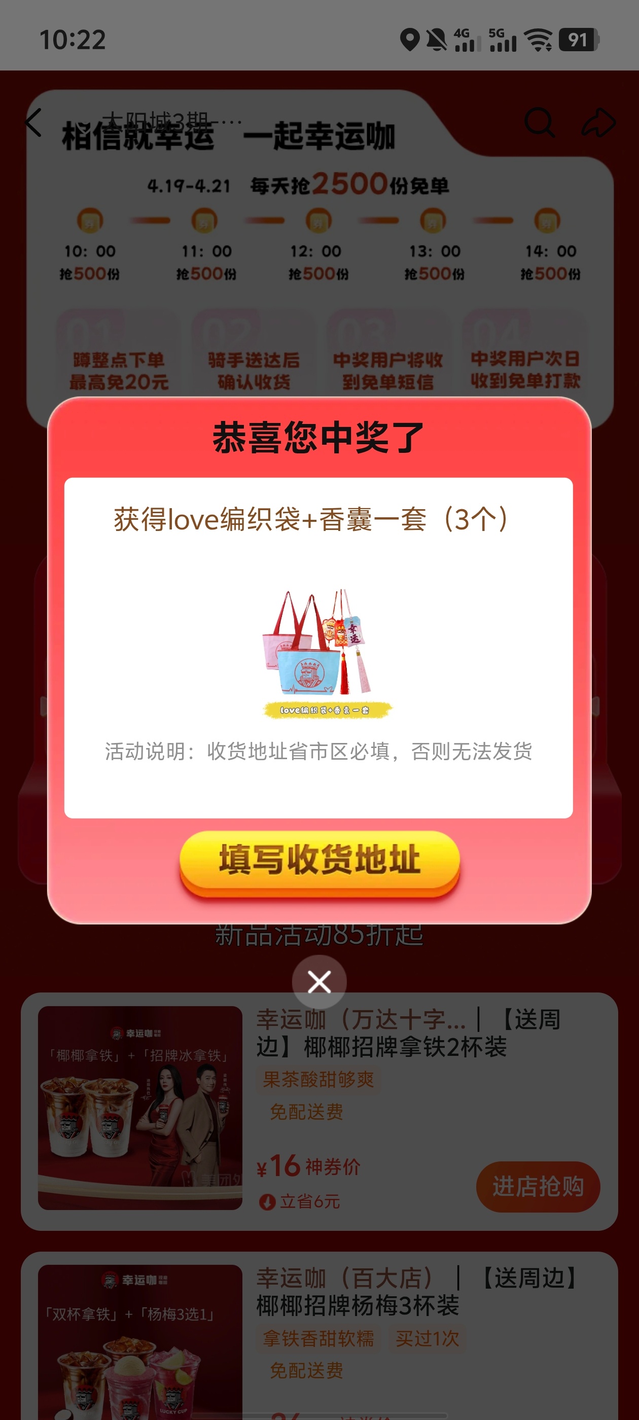 幸运咖 下过单的记得页面去抽