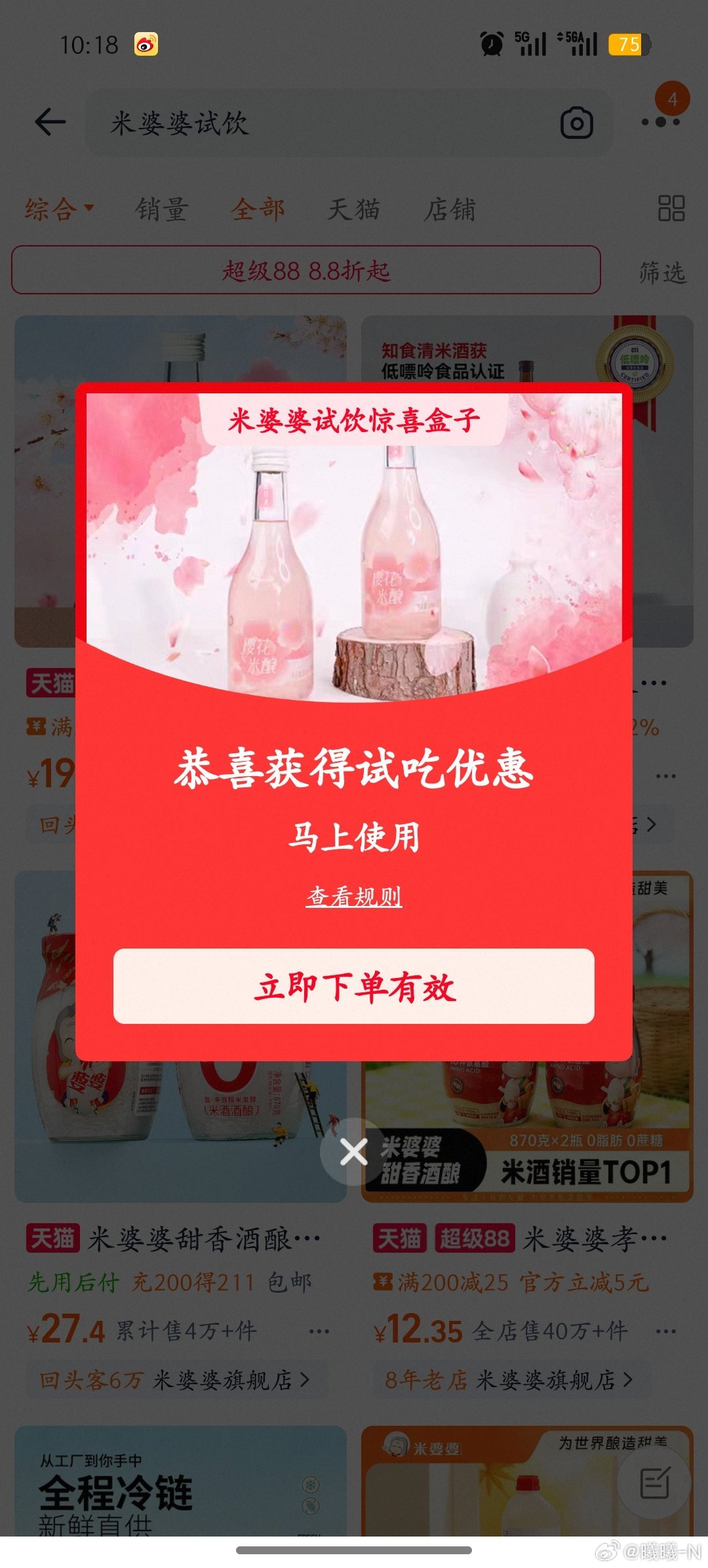 淘宝搜:米婆婆试饮 - 幸运咖 下过单的记得页面去抽 ⏰10/11/12/13/14点 每场500名...