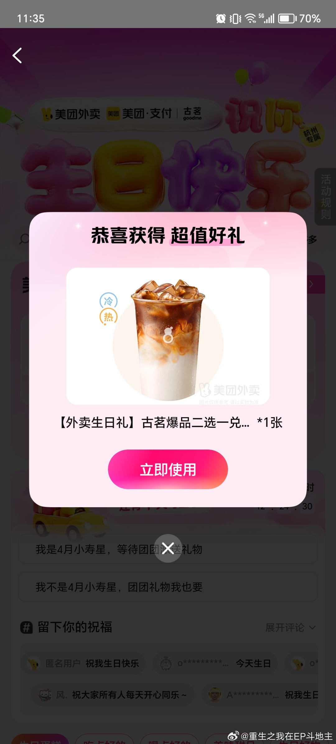 美团左上角改位置:济南 然后再搜:外卖生日礼 能直接一张 限地区可用哈 冲...