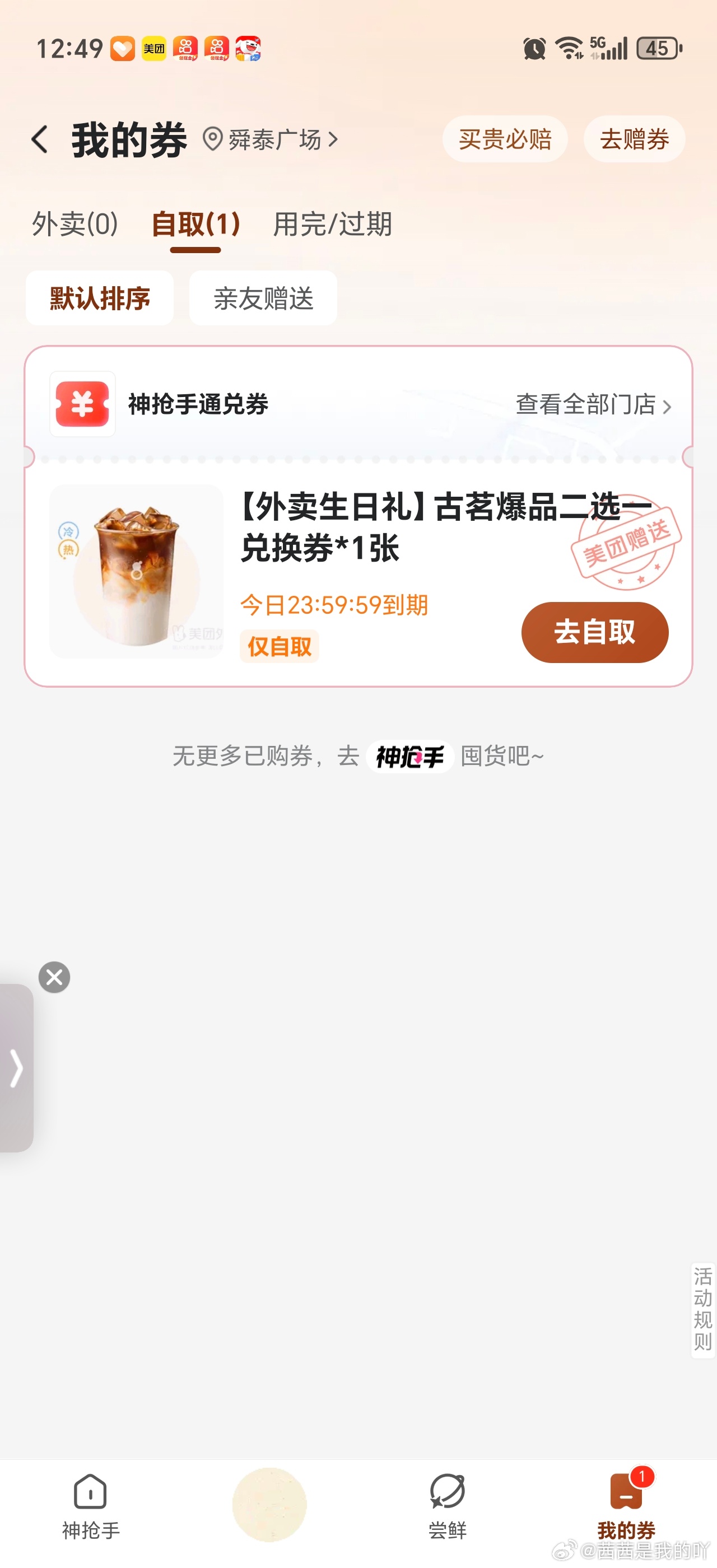 古茗赠券换爆品/自取卡,抽中换