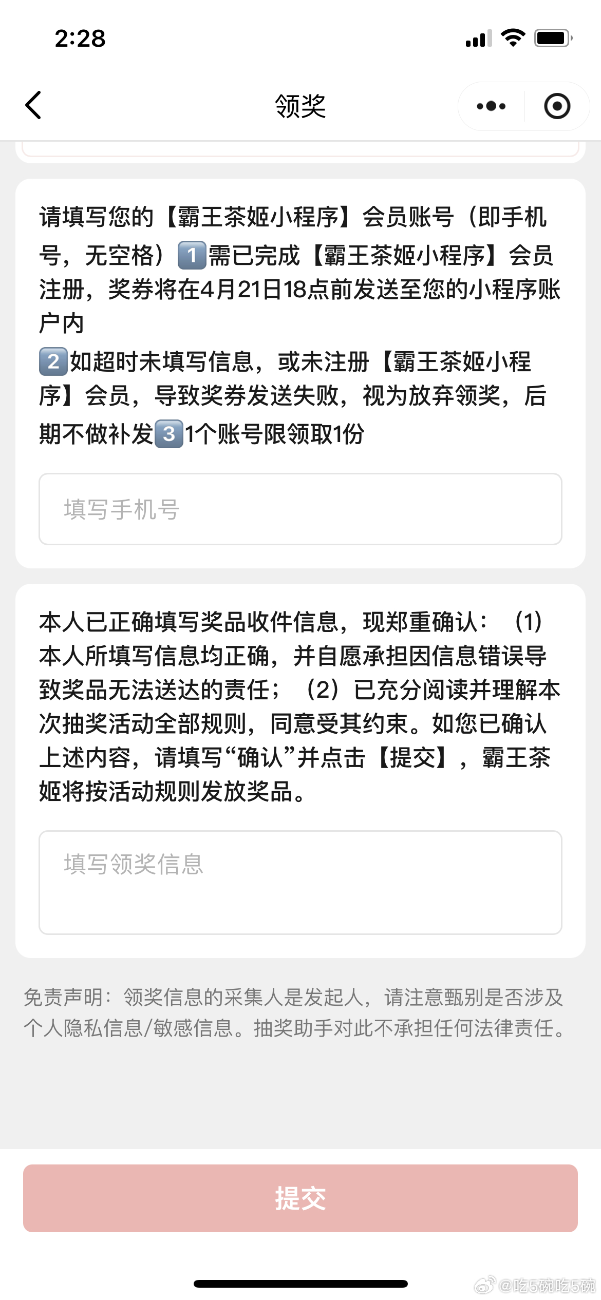 请问公众号抽的霸王茶姬领奖信息填啥呀