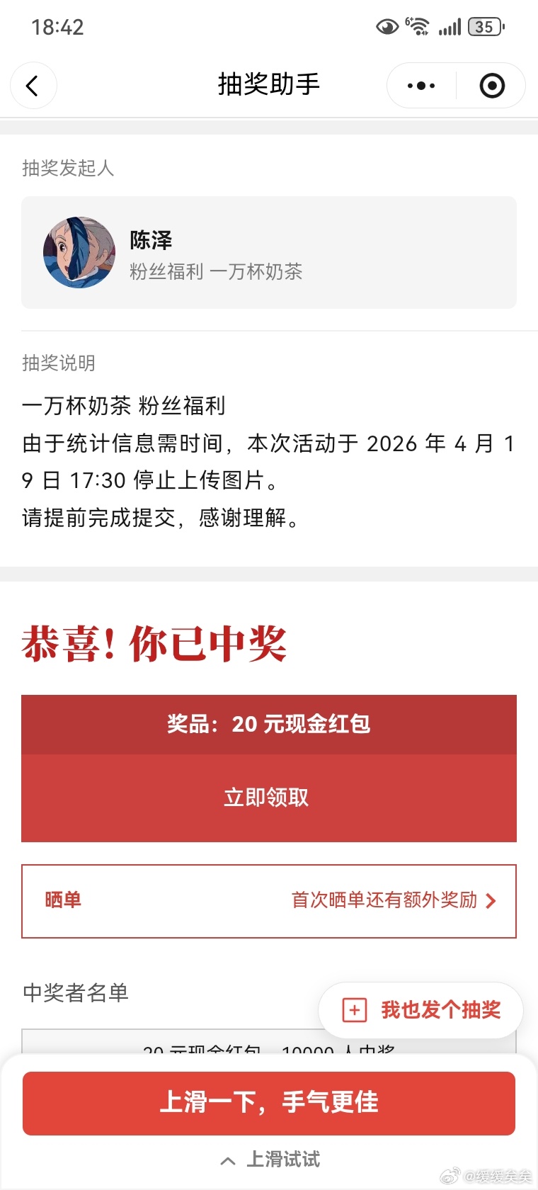 回复@想想干点啥:佩奇的一次没中过![[二哈] [二哈]](https://face.t.sinajs.cn/t4/appstyle/expression/ext/normal/4a/2018_erha_mobile.png)