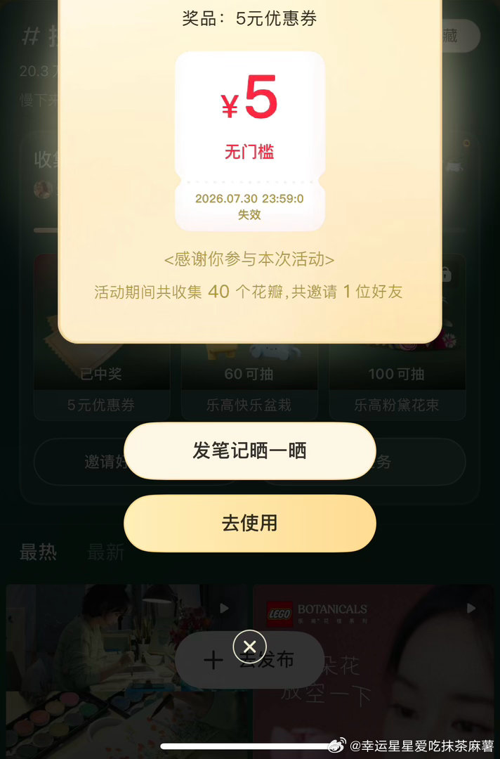 xhs搜 拼一朵花放空一下 横幅下面立即查看 5无门槛 ...