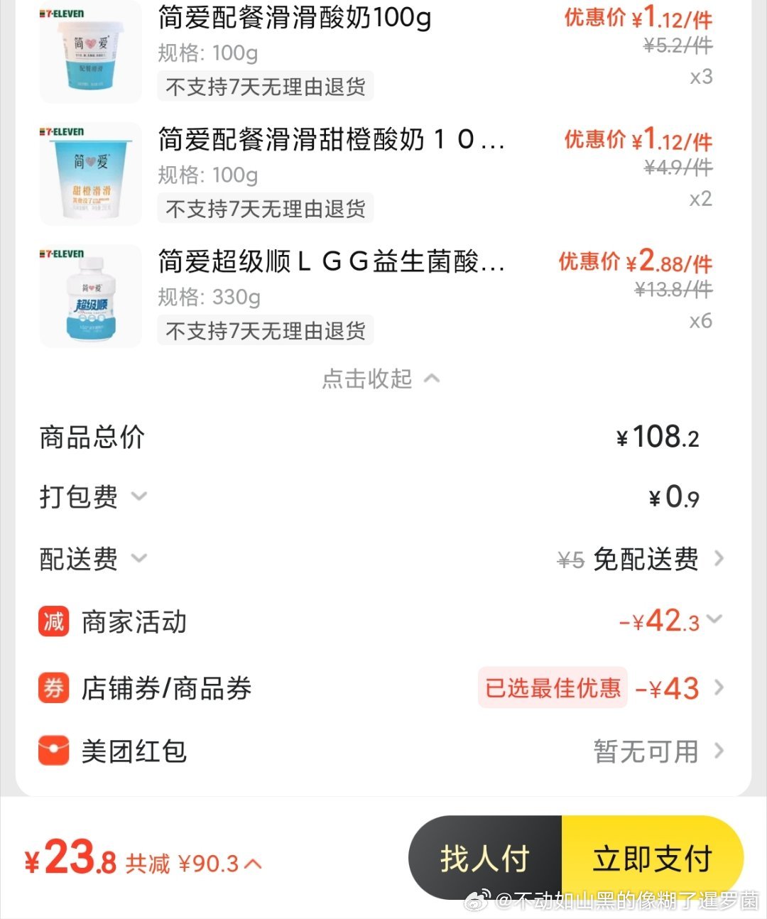 美团闪购711便利店,简爱有69-43券,按需组合