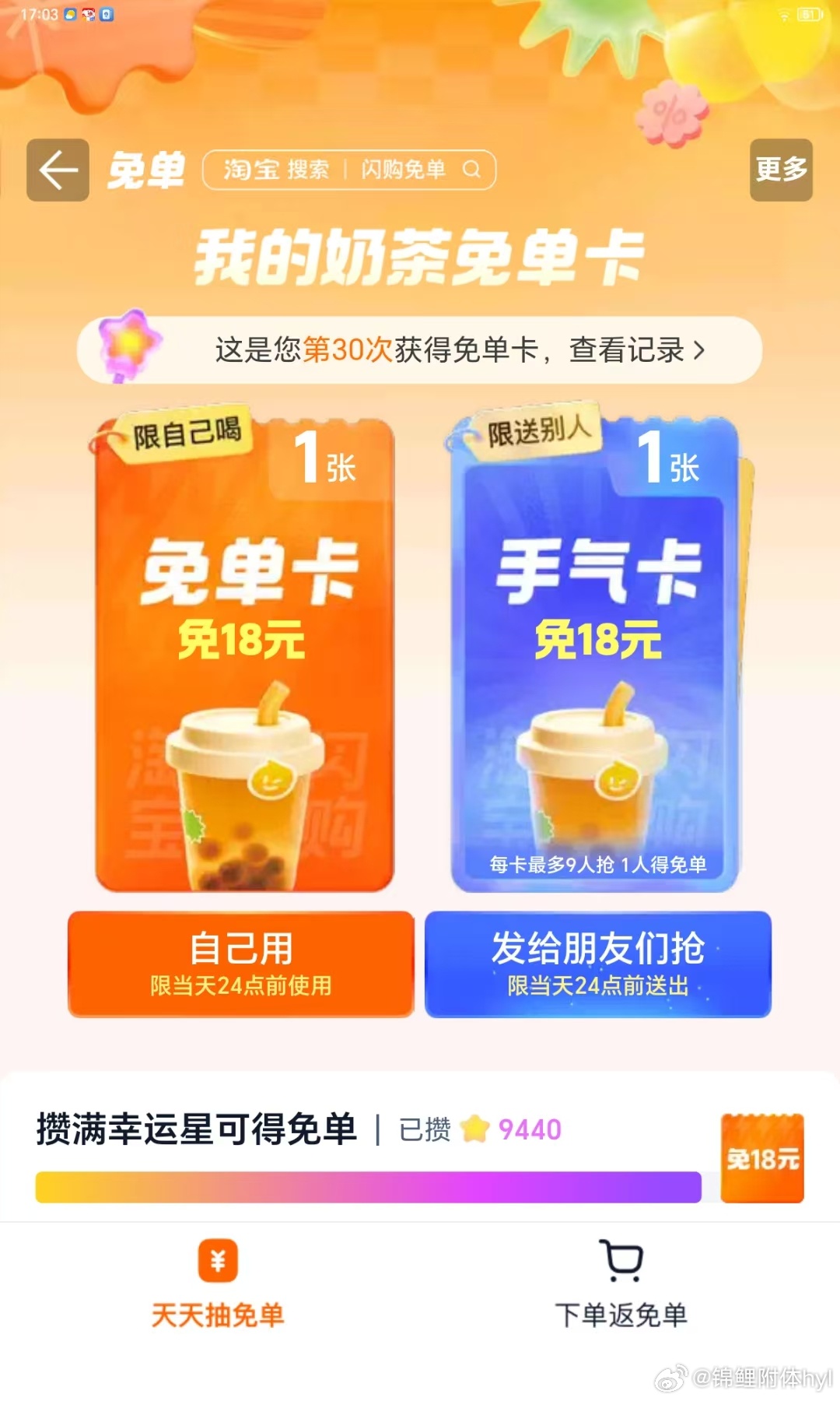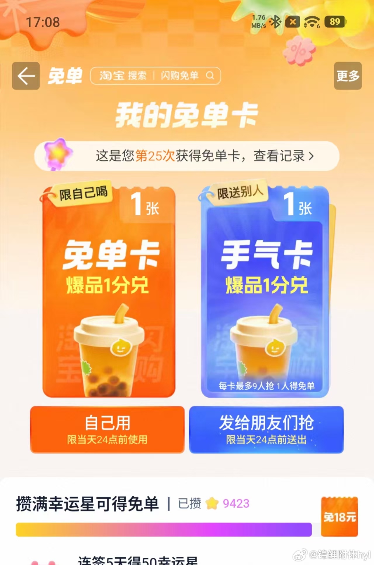 周末都没这么爽,也是好起来了,17:03中了18奶茶卡,08一张爆品卡