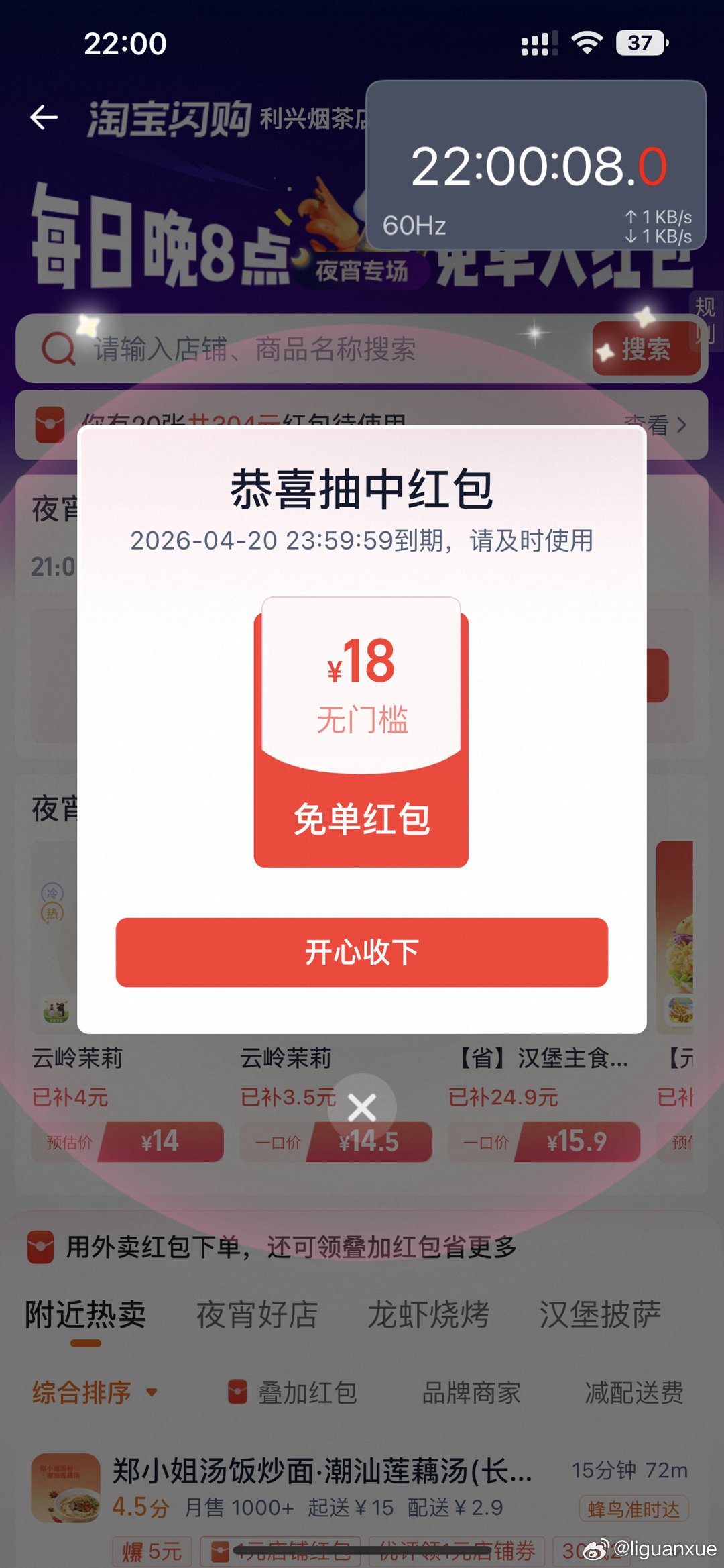 淘宝闪购卡点抽夜宵18虹包