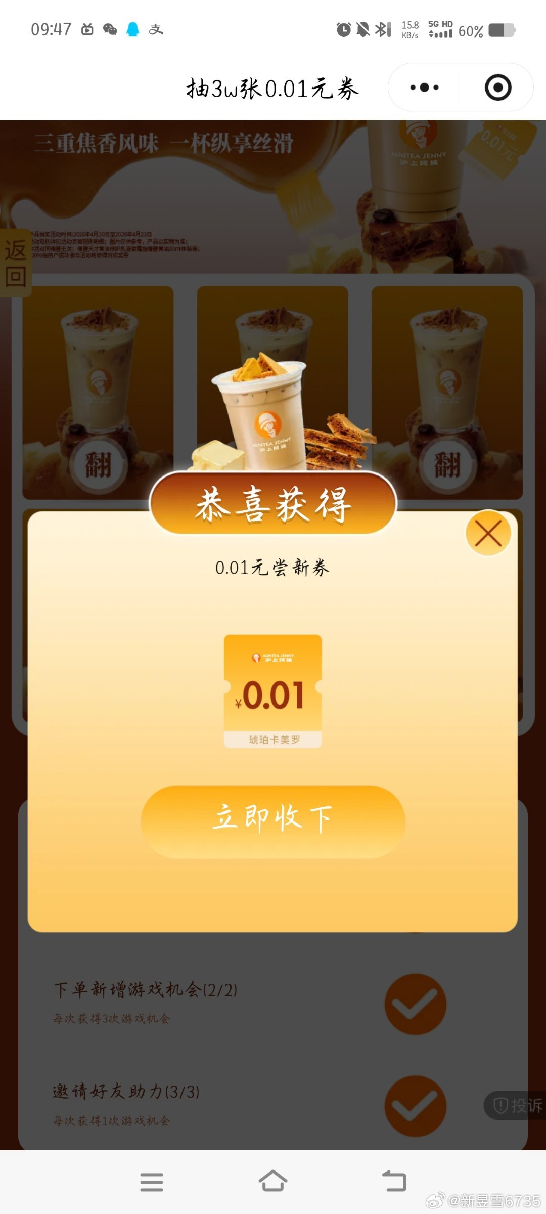 有反馈 沪上阿姨抽3w张1分喝