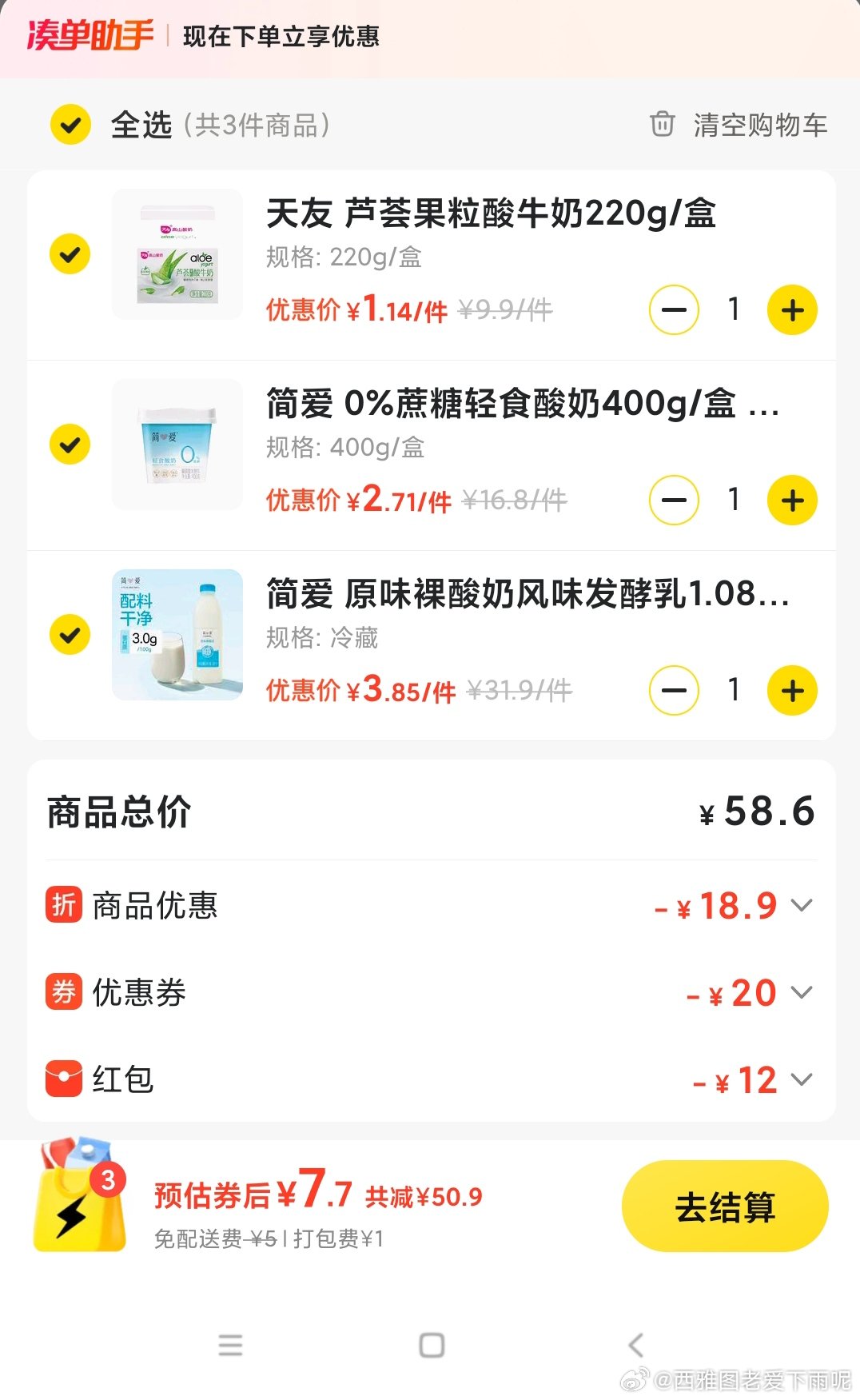 合理凑单用59-6购物券和红包,拍1件vip【16.59】