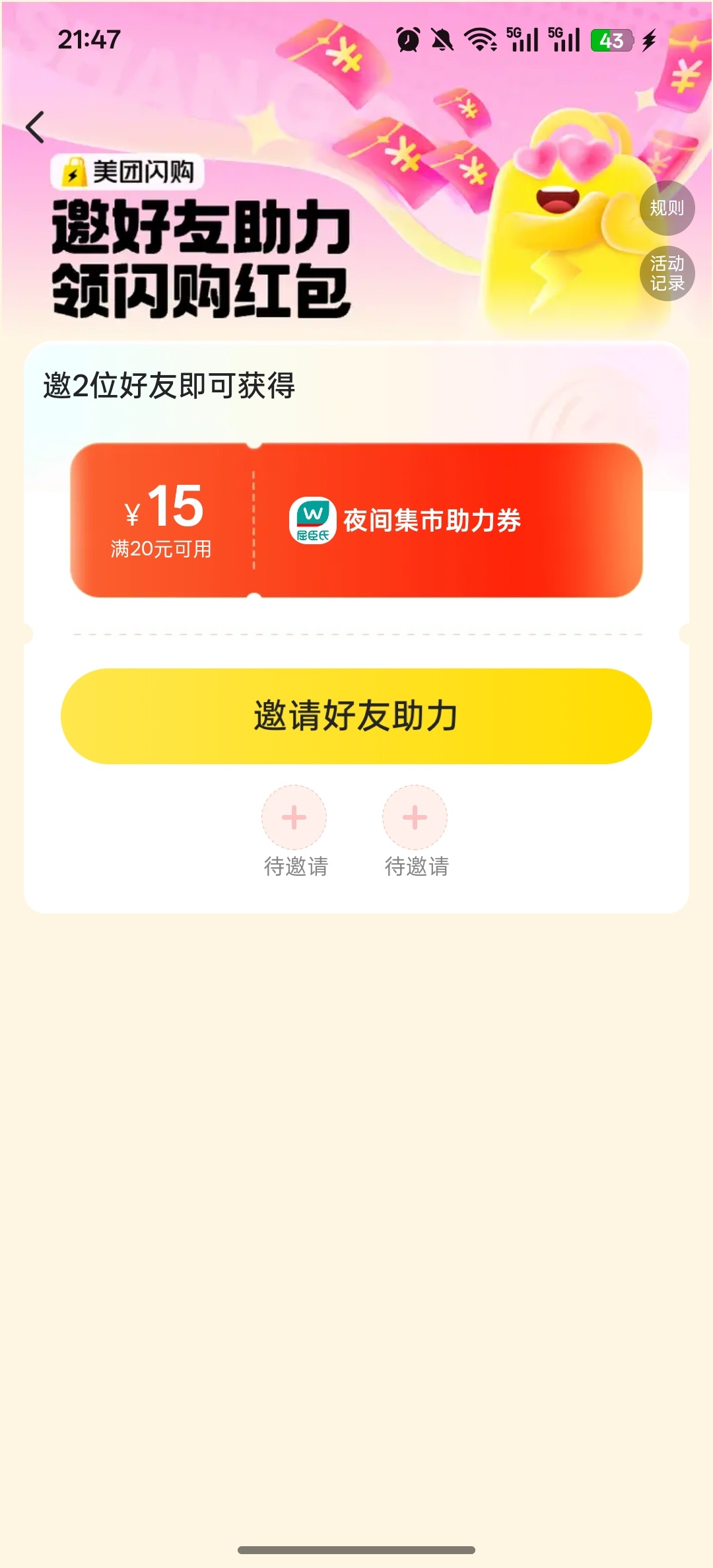 美团搜 夜间集市 助li领20-15可以叠加神券包...