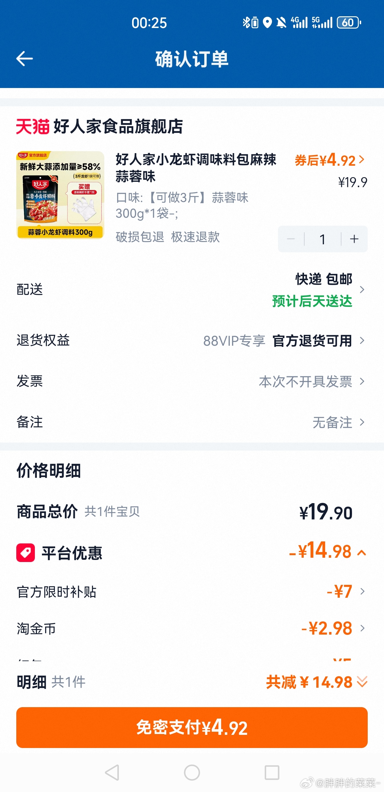 五元券可以买好人家的小龙虾调料包