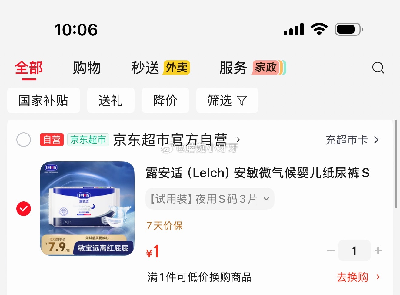 露安适纸尿裤S码3片,也是1