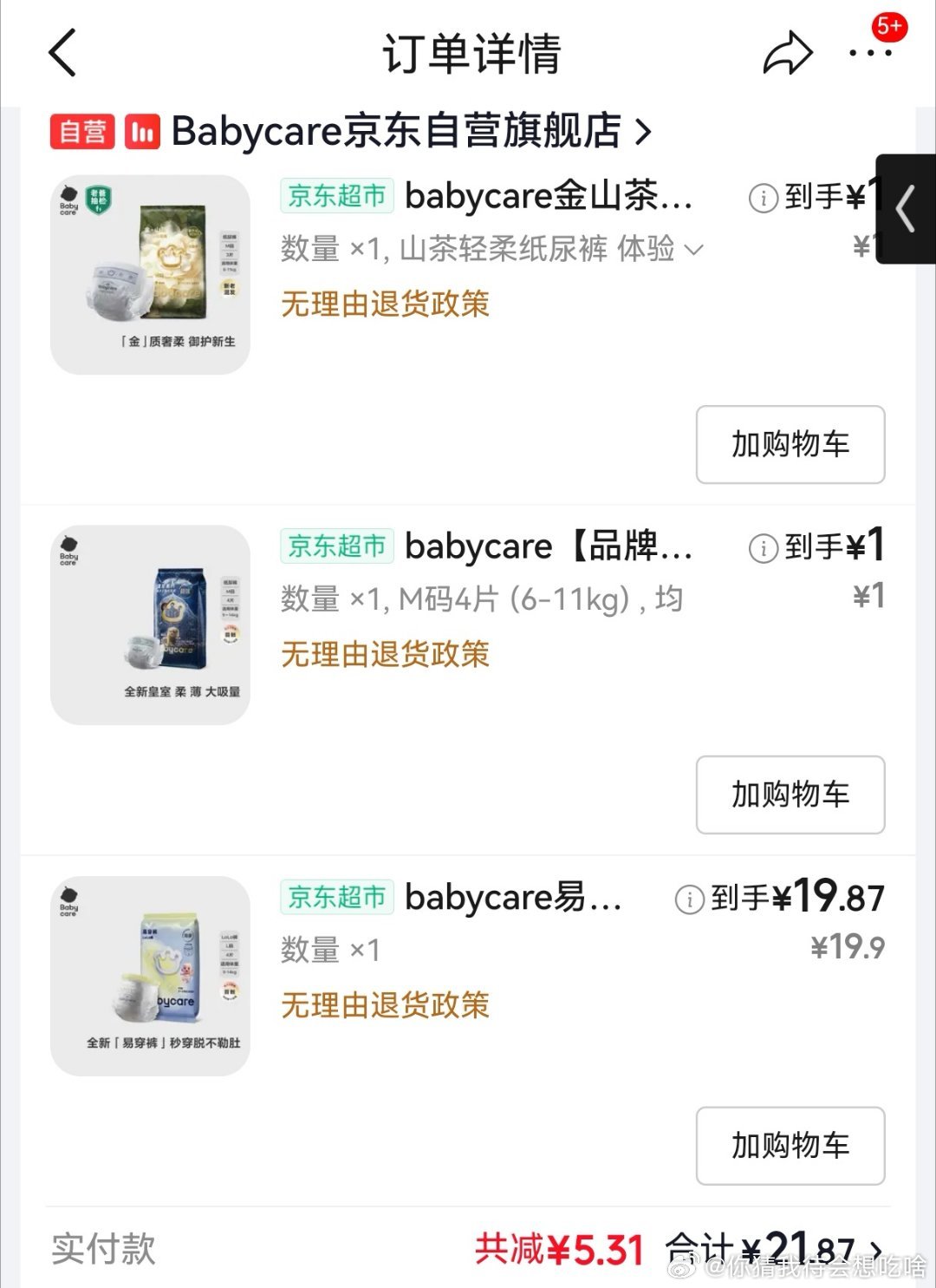 姐妹们,请问刚才的每日必秒抢到的纸尿裤这个情况,我是只能整单退?还是可以收到货只退原价贵的那个?