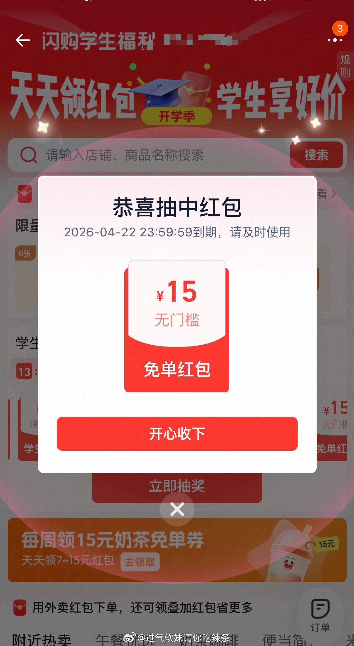 12点 卡点抽奶茶 淘宝闪购app抽 ❗技巧: 整点前先扫别人的空码 等整点在页面抽即可哈 黑 号可...