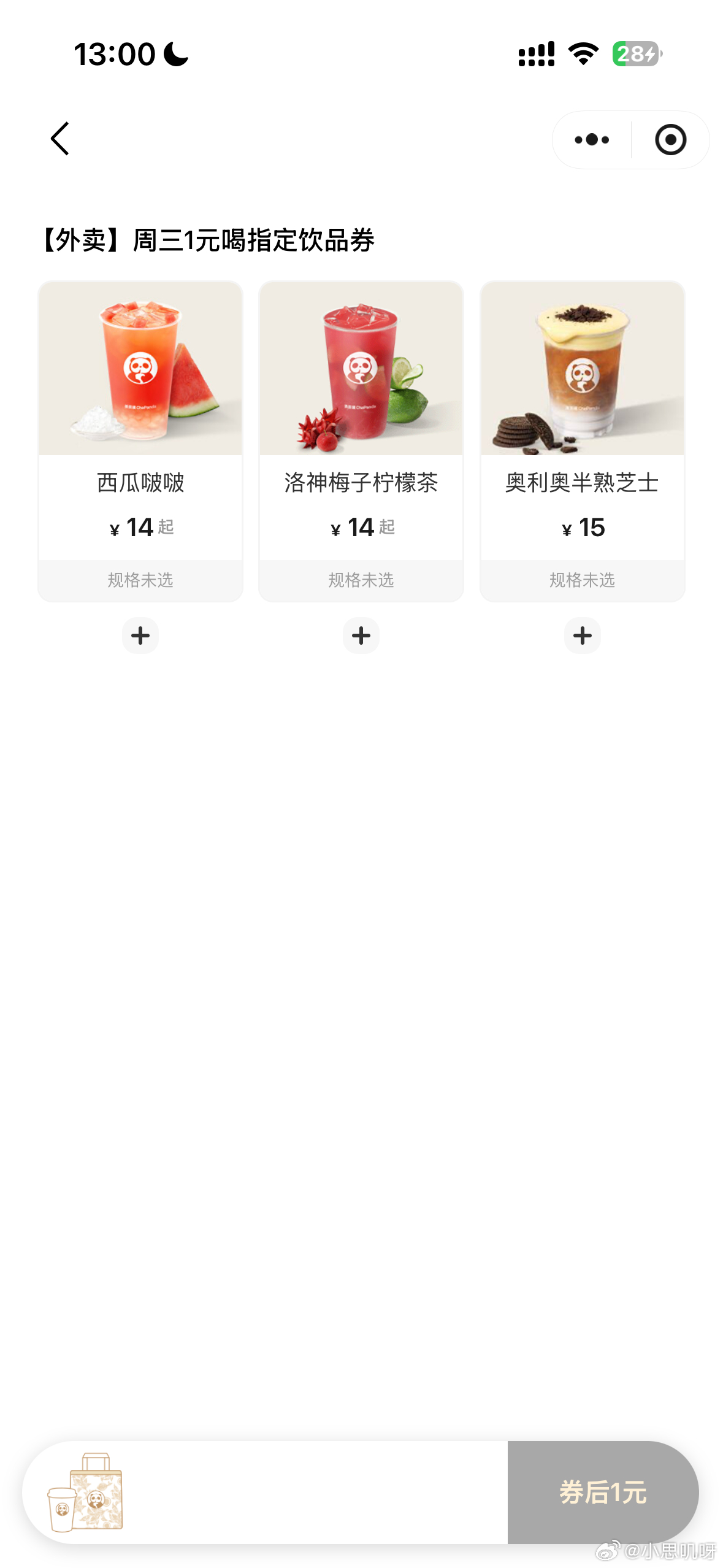 ⏰13点 茶百道外卖1888张1亓