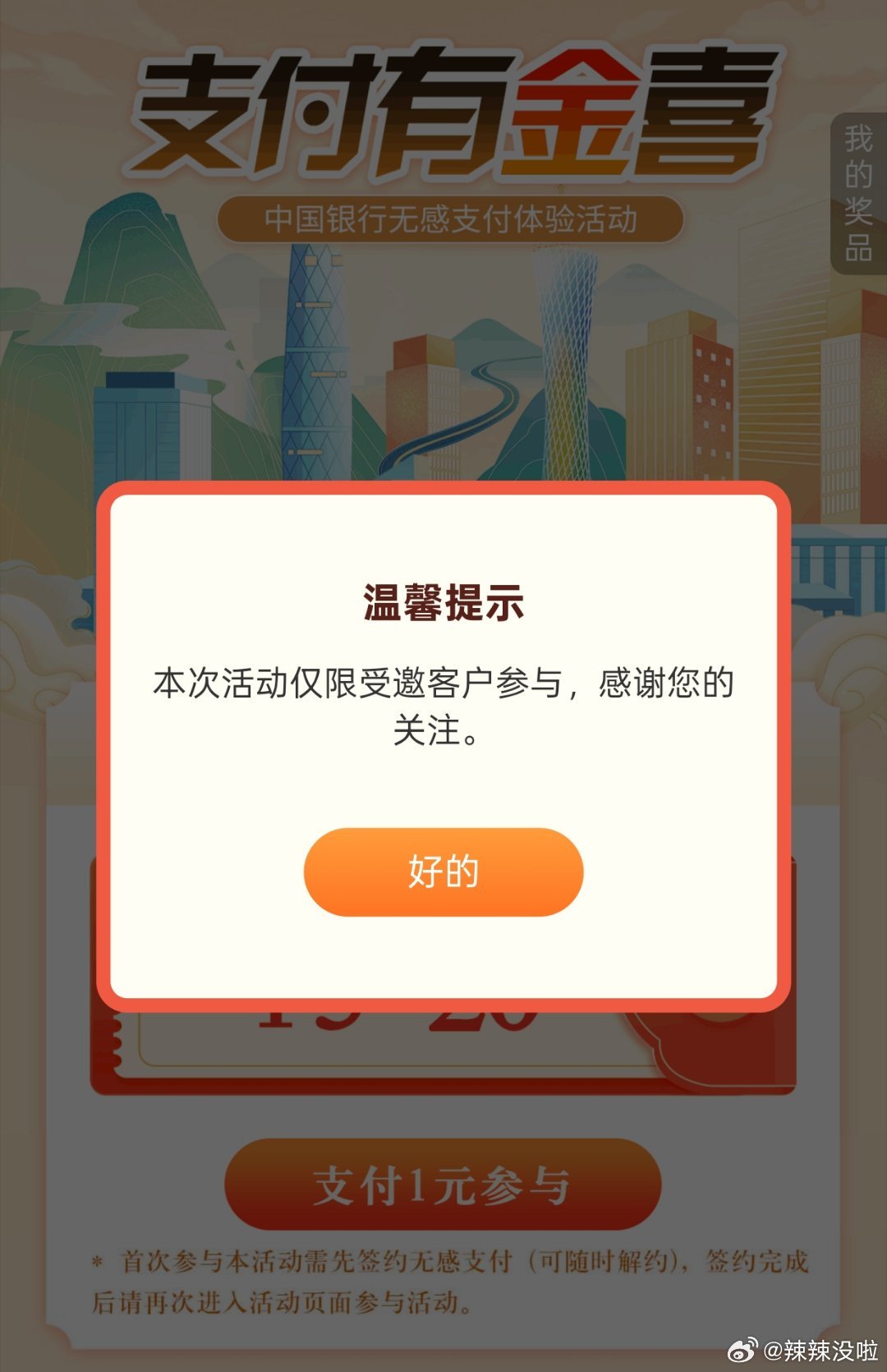 反馈 广东中行特邀用户(深圳除外),从中行app,生活-城市服务-特邀专享,活动页面支付1元可得5-...